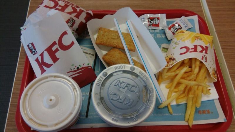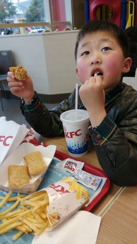 到了肯德基,点点和妹妹就去滑滑梯的地方玩了,我就去买点点吃的东西,因为现在还没有开始上学,肯德基里面点餐的人真的很多,我的手机流量也没有了,所以就只能让旁边的小伙子告诉我电子优惠券的编号,然后我就记住那些编号,这样点餐就可以便宜几元钱吧,我点了C18,C19,C20,C21,有薯条,蜂蜜柚子茶,还有可乐,,红豆派,鸡翅和一个汉堡,点点吃点红豆派和汉堡就可以了,饮料就吃可乐。