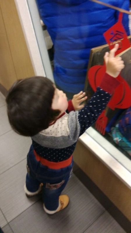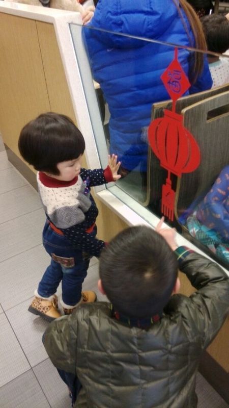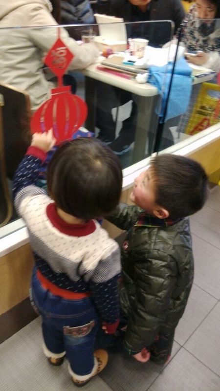 两人吃完以后又去旁边的滑滑梯玩了,妹妹坐在那个滑滑梯的台阶上,差点就被大小孩撞下来,真的吓坏我了。后来点点去了滑滑梯下面睡觉,妹妹也爬进去了,两人在里面睡觉,一会儿点点出来了,妹妹怎么也不肯出来,在里面爬来爬去的,超级可爱。然后点点点把妹妹喊出来,可是妹妹不肯出来,这样阿姨就只能去把妹妹抱出来了,我们在肯德基的门口看到了一个灯笼,点点教妹妹认字,两人一起认字,妹妹认识上面的一个福字和下面的一个春字,很厉害哦。出了肯德基,我们就去图书馆玩了。