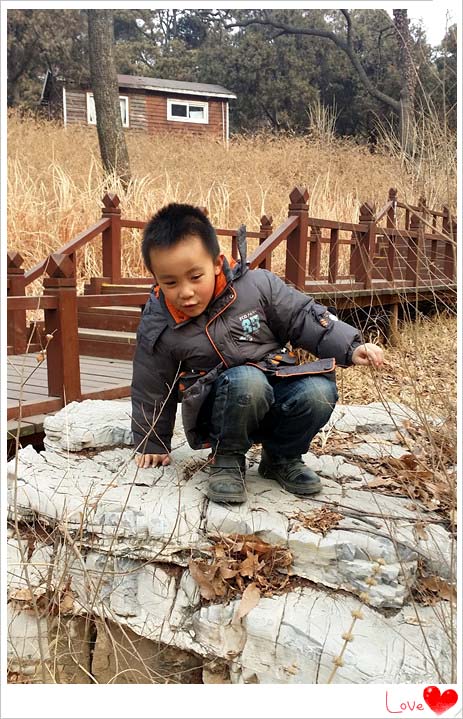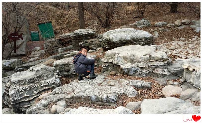 如果不是冬季的话,此处则是游人禁止入内的区域。夏天的时候包括这片石头区域都是被水覆盖的,倒是冬天的时候因为没有了水则满足了去石头上玩的想法。去年来的时候还有冰可玩,今年连冰都没有了。小家伙要到达这片石头堆上玩也是需要一番努力的,石头上上下下的也不好方便行走的,这里宝贝发现了一个小石洞,好奇的很,仅仅是个洞洞而已,可是孩子却关注的这是谁的洞呢?另外为在这里还找到一根喜欢的棍子让孩子有了意外惊喜。