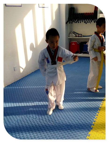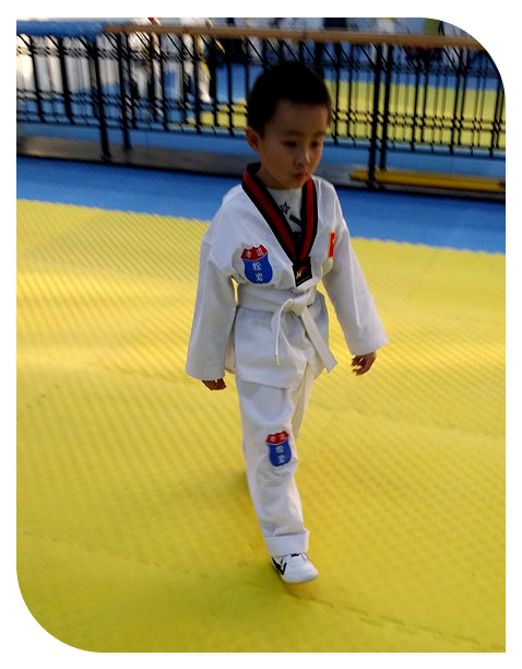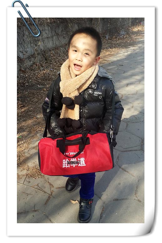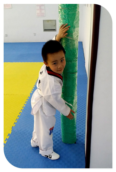 2015年给小家伙报名参加了跆拳道的寒假学习班,当时是朋友推荐的,带小家伙试听了一堂课后没想到宝贝十分喜欢,当时就嚷嚷要妈妈报名,首先吸引孩子目光的就是那套精神的跆拳道服和鞋子了。后来正是交钱给宝贝报名,跆拳道是每堂课1小时,妈妈感觉时间短了些,因为这也是一项运动,既然是运动在开始之前就要让孩子活动一下身体算是热身吧,这样在学习动作的时候就不会造成肌肉拉伤的伤害,所以出去这方面的活动真正学习的时间并不算多。 宝贝的这个跆拳道寒假班算是一个混搭的吧,参加学习的孩子们有的是白带,有的是黄带,还有蓝带的。白带算是最基础的,考级之后就会变成黄带的。通过这阵子的学习感觉到小家伙对跆拳道的喜欢,在家的时候也是打打拳提提腿啥的,而且好像也跟着正式练习套路的感觉了。每次上课的时候家长都是要离开的,妈妈也是送孩子来到场地后就会走,然后等到下课的时候在来接小家伙。有的时候早来几分钟就会听到孩子们跟着音乐伴奏练习跆拳道的声音,从中能够感受到孩子们的精气神和开心劲。能够如此,作为家长的我也就知足了。