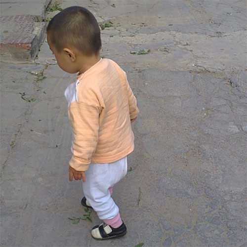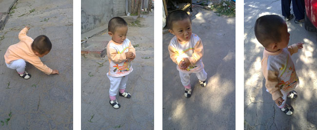 应他要求,我陪着他在胡同里晃悠,快走到胡同口时,他突然停住了脚步,转身冲着第一家的大门口走去。我哄孩子都是寸步不离的,他过去,我自然也赶紧跟了过去。