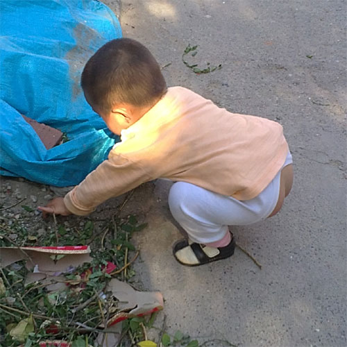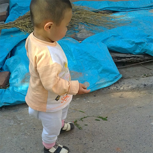 走到近前俯身一看,原来他正哈腰捡着一块石头。秃秃这个孩子,给他买的玩具从来不爱玩,专门喜欢捡地上的空瓶子、纸箱子、大石头、小木棍来耍……