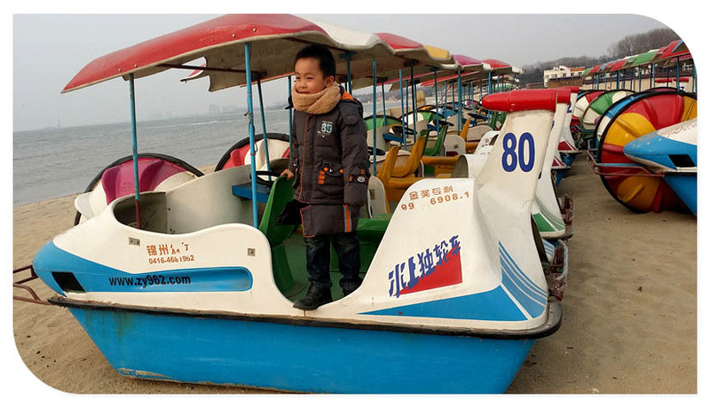 发现了不远处停泊的好多船,冬天没人玩,船停在岸边也没人管。谦问妈妈能够开到海里去吗?妈妈摇摇头说是没钥匙啊。这船是停在这了,但是只有船的主人才有钥匙将船打开的。既然如此上船玩玩体验一下开船的感觉也不错了。