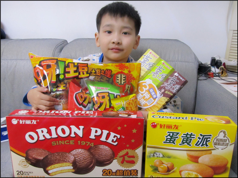 现在的小孩子生活也是好了,差一点儿的都不吃,净挑选贵的、好的零食吃,例如我的一盒德芙,呜呜,在我不知道的时候,就被Aric的小伙伴们给分光了,Aric还乐颠颠的把其他零食拿出来分享,然后我的巧克力派呀、薯愿、呀土豆就又被分没了。也幸好我每次只是每一种拿出两包放在茶几上,其他的都被放到了箱子里,否则Aric这个超大方的小屁孩,指不定不出三天都给我送出去呢。 人家Aric也说了,无论是爸爸妈妈还是老师都教他要分享,所以他分享零食是非常正确的。好吧,想要面子就得付出,所以为了不让Aric丢面子,也不让Aric认为我们的教育有误,只好多下几单,由着Aric招待小伙伴。我最喜欢的是蛋黄派,Aric不挑,什么都可以吃,什么也都不着迷,这点我比较放心,否则哪这么大方啊。其实家里备着零食的目的也不是主要给孩子吃的吧,反正我家备的零食主要目的就用来招待了。 ![]() 我最爱的蛋黄派,当时看差了买了12个的盒装,第二单才又下了20个的盒装。巧克力派是老弟家萱萱的最爱,Aric相比起来更喜欢熊猫派。 ![]() 这个还是不错的,不过送的那一包是小的。味道不错,适合小朋友吃。 ![]() Aric最喜欢吃薯愿了,独立包装也很让人放心。甜天麦我喜欢吃,就像爆米花一样。 ![]() 第一单都是比较大的东西,所以品种不多,不过也都是好丽友经典的零食了。
