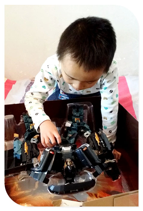 还没到家的时候就忍不住的要继续看起来,变形金刚对这小子的吸引力咋这么大呢!这玩了一年多了还没有丝毫的降温呢,变形金刚里的人物小家伙也是相当熟悉了。