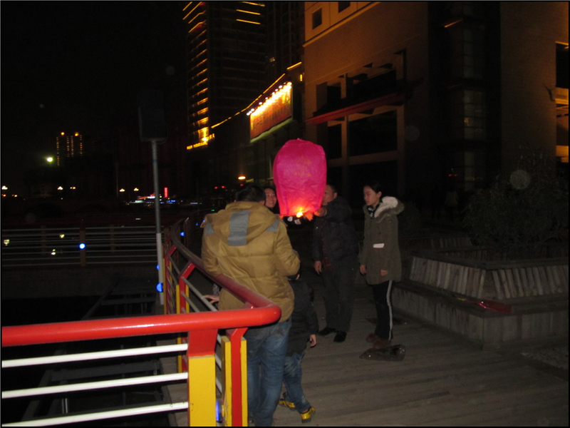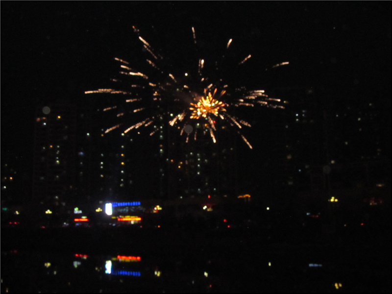 元宵节也叫团圆节,每年我们都会去婆婆家度过这样一个节日,可是因为老公一大早出差,所以没能去成。老公在下午5点前回来的,老妈已经做好了饭菜等待我们,吃过饭一家人去沂河看烟花,但是发现人来人往的都奔向万兴都,询问后才知道,原来因为雾霾的问题,所以今年取消放烟花,但是万兴都有年货大街的缘故,就会比较热闹,而且也有人和店家会放烟花,因此我们只好改道,去了万兴都看烟花。 人可真多啊,而且特别热闹,都在熙熙攘攘的放烟花、放孔明灯,孩子们嬉闹着。在沂河边,我们欣赏着烟花,有时会很多家一起放,有时会放一个大的漂亮的烟花,然后中间就突然停个好几分钟。每次我都拿起了相机调好了角度开始拍,然后只会拍到残影。等着漂亮的烟花,又会拿相机比较累又冷,还耽误和儿子老公一起玩,于是老公就建议欣赏吧,别拍了,美丽的景象留在心中就好,能拍下老公儿子就是最棒的。