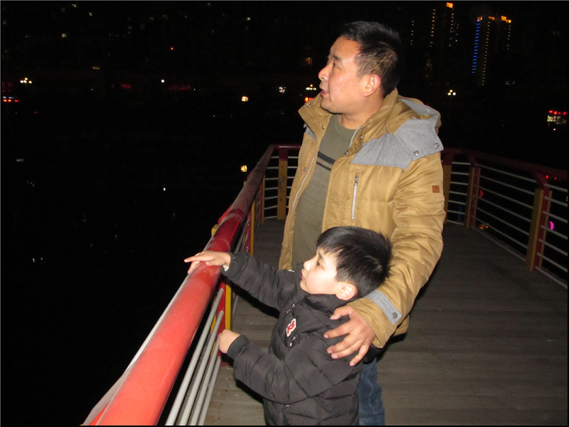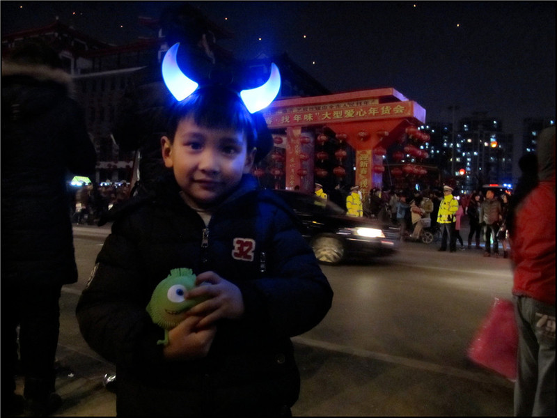 老公想给Aric买一个灯笼,Aric不要,说那是小孩子才玩的,老公问那你想要什么?Aric看了看四周说想要一个放光的棒子。我问为什么?Aric说:“妈妈,你知道为什么这么黑吗?其实这样走路是很危险的,我拿着发光的棒子给你指路,你就不用担心危险了!”额,真的假的啊?不会是你想玩才这么说的吧。不过最终经过老公和Aric的协商,买了一个会发光的牛角发箍,Aric说自己属牛,就是牛宝宝,戴着这个就更像牛宝宝了。 ![]() 父子一起看烟花 ![]() 每次赶不上最好看的时候拍,所以拍的比较模糊 ![]() ![]() ![]() ![]() ![]() 除了烟花,还有孔明灯,Aric和老公看的津津有味 ![]() 看到别人放孔明灯,老公在给Aric普及孔明灯的知识 ![]() 熙熙攘攘的人群,都在万兴都凑热闹、看烟花、放孔明灯 ![]() 小牛宝宝送上祝福喽,在此祝福所有的小朋友身体健康,所有的麻麻漂亮苗条,所有的粑粑帅气事业有成。9点多钟回到家,姥姥和姥爷,以及舅舅舅妈妹妹们,已经在等着Aric回家放烟花了。