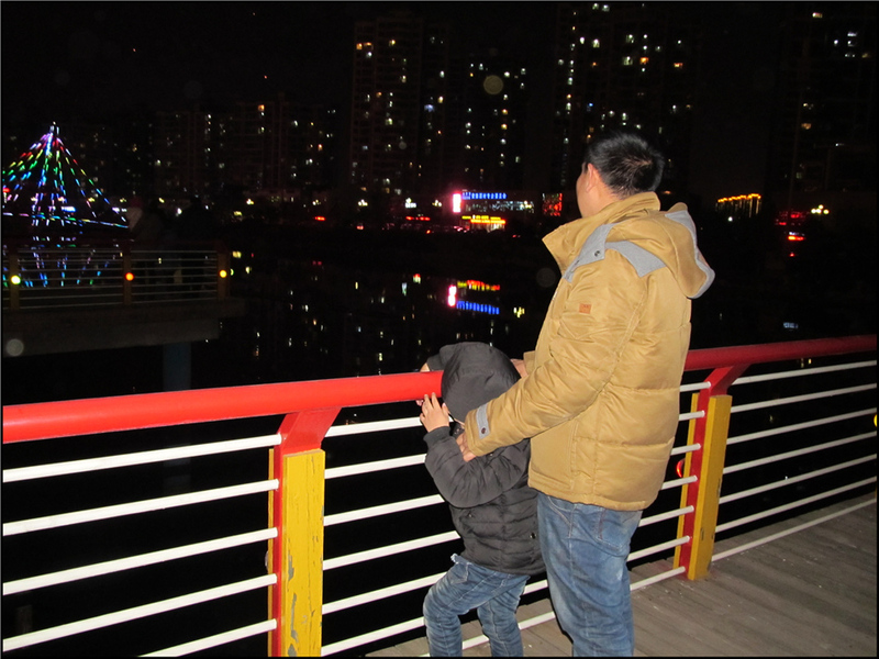 宝贝好萌啊!好美的夜景,节日气氛很浓啊。