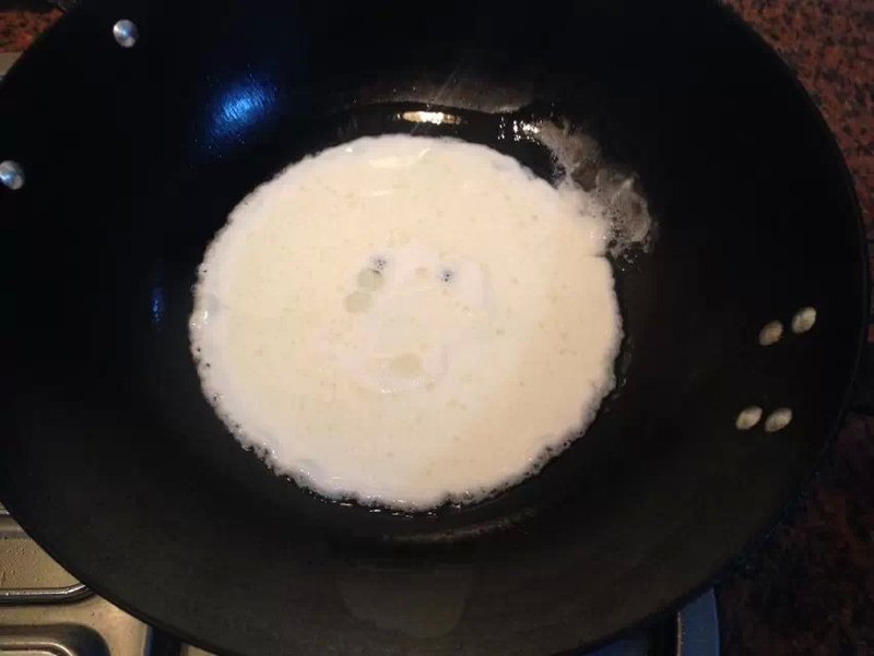 炒牛奶的小视频发到朋友圈后,大家都很好奇是怎么个炒法?吃起来味道怎么样?纷纷惊叹原来牛奶也能炒?当然我也好奇到底要怎么炒呢?炒好后的牛奶味道一定很特别吧? 百度了一下发现做法其实还蛮简单的,所以晚上也尝试了一下。准备好的材料:牛奶、白糖、淀粉(我买的是写着食用玉米淀粉,一直分不清楚淀粉与生粉的区别,亲们请赐教) ![]() 按照百度来的做法:牛奶100ML、鸡蛋取蛋清,白糖和淀粉各1勺。这里有个蛋清与蛋黄分离的简易方法,就是鸡蛋嗑一个小洞, 轻轻地倒在碗里,注意不要让蛋黄流出来就行。 将上述所有材料倒在碗里,用打蛋器搅拌均匀直至无颗粒状。 ![]() 锅内倒入少许油加热,慢火翻炒 ![]() 炒好的牛奶,不知道算不算成功呢?自己感觉火候大了些,看起来不蓬松,倒像是一碗豆腐脑了。 ![]() 刚炒好的吃起来像豆腐脑,加太多糖了,有点甜了。也可以加盐的,味道就不知道怎么样了。没吃完放冰箱镇了一下,又点像双皮奶了。 有亲做过炒牛奶吗? 本作品未经作者许可不得转载,转载请征求作者意见。擅自转载使用,将保留追究其法律责任的权利! 个性签名