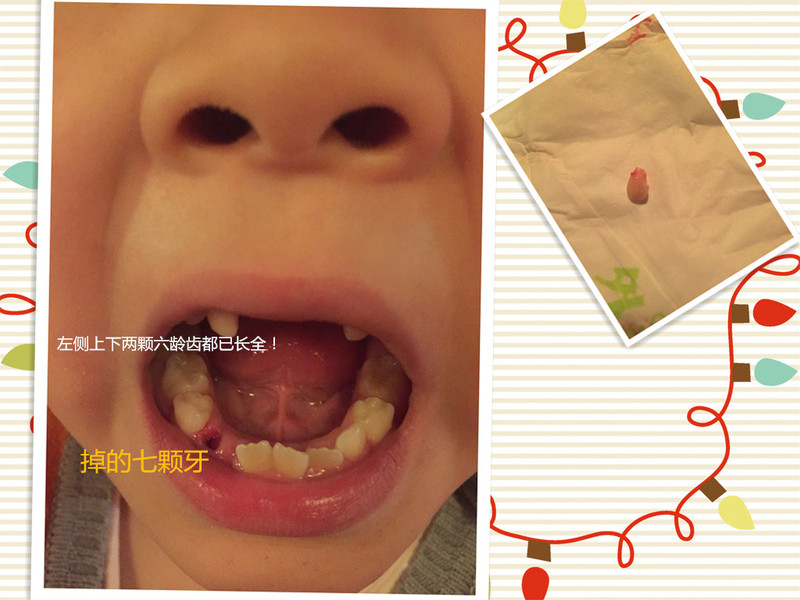 小豁牙,呵呵。贝贝掉了四颗牙,都是下面,上面一颗门牙松动有两个多月了,还没掉,太慢了