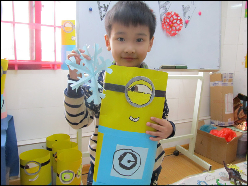 首先是老师给孩子们导入了小黄人的科普知识,小黄人是3D动画电影《卑鄙的我》中主角格鲁使用变种DNA、脂肪酸加香蕉泥做成的机器人,身穿蓝色背带裤。这些小黄人数量众多,拥有自己的语言,短胳膊短腿,走起路来非常可爱。他们看似做事不专心,但是工作能力强,听命于格鲁,但却拥有自己的思想。小黄人还有其他名称,例如:小小兵、黄豆豆、黄色小胶囊;身高:94-120公分。 因为要引导孩子来认识小黄人,所以包括了它们的常用道具:扳手、火箭筒等;爱好:笑、闹、吃香蕉人物特点:套上特定衣服扮啥像啥,都有详细的给孩子们介绍。这是用两天的时间,也就是一共两节课来做的手工课,最后时间还有富余的,所以又多教导孩子们做了剪纸的手工课,Aric学习剪了一个蓝色的雪花,很漂亮。我很喜欢这个绘画社给孩子们上的这种课,会提高孩子的兴趣,学习性和趣味性都很强。 ![]() 第一节课我没拍,这是第二节课。第一节课中孩子们认识了小黄人,并且做好了折纸的准备。 ![]() 这是老师微信的照片,Aric在很认真的做着手工。 ![]() 老师黑板上画的素材,还有老师提前折好的小黄人。 ![]() Aric两节课的成果,一个小黄人,一个蓝色雪花。Aric把小黄人的嘴巴画的有点小了,不过眼睛还蛮大的,另外身体上的标志画的也很可爱。老师对Aric的评价:小黄人造型虽然比较简单,但考察了孩子对尺子的使用。Aric在尺子和剪刀胶棒的使用上明显比海绵宝宝手工课时要熟练,画面也很整洁。 ![]() 本作品未经作者许可不得转载,转载请征求作者意见。擅自转载使用,将保留追究其法律责任的权利! 评分记录