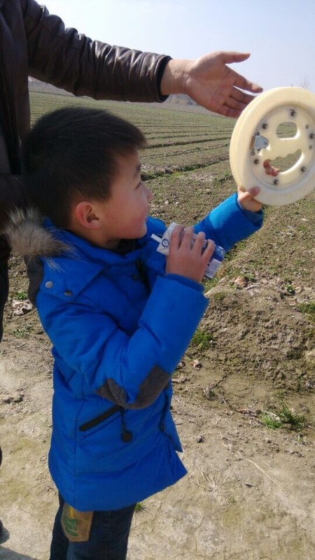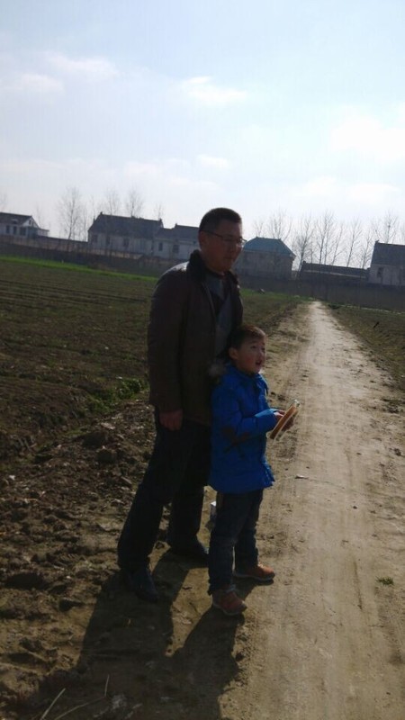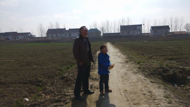 放假在家无所事事,点点爸爸提议一起去门口的田里放风筝,在我们老家的门口是一片包菜地,田野里一片包菜,很空旷,还有一条宽宽的泥土路,正好适合放风筝,在这片田里还没有电线杆,所以风筝也不会被绕住,于是我们就准备一起去田里放风筝了。