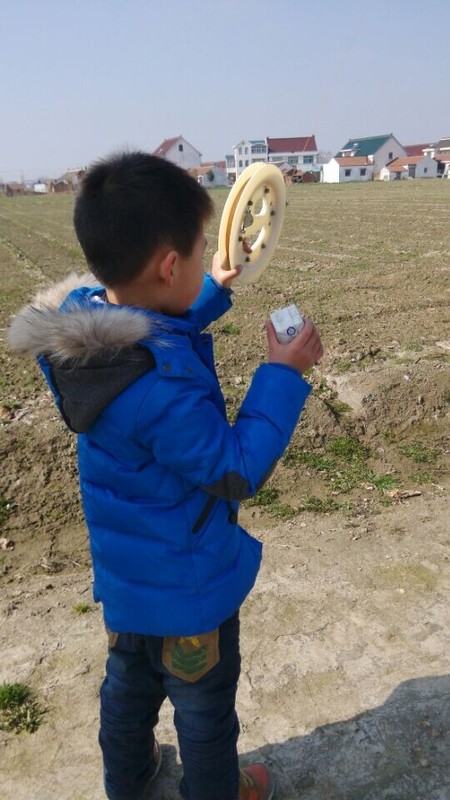 天气晴朗,万里无云,风还是挺大的,阳光时有时无,我们听见东南方向传来一阵呼呼呼的声音,点点爸爸说那是他们这里老家的老人自己做的风筝在放,那个自制的风筝放出来就有这样呼呼呼的声音,就像风筝在唱歌,可是我们看不见风筝,可以听见很动听的风筝唱歌的声音。我们家的风筝有一根棒断了,点点爸爸就用竹子代替了,这样风筝就修好啦。