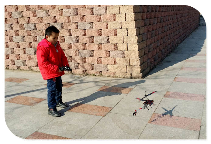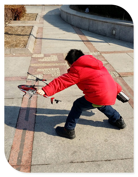 找好了可以遥控飞机的地方,小家伙迫不及待的就要操纵起来。虽然是遥控的,但是想要把飞机遥控好也是不容易的事情呢,对于小家伙来讲现在开飞机的技术可是十分的有待提高的,目前小家伙的水平也就是可以将飞机起飞后升空到一定的距离,这个高度还不能太高的,否则下降的速度控制不好飞机很快的就会跌落下来。有几次看到飞得很高的飞机生生的就摔在地面的时候,还真是心疼啊,要不说这个飞机一定要抗摔呢,孩子练习遥控飞机的过程中,想要不让飞机挨摔根本是不可能的啊,只能说是减少次数而已。妈妈反复跟小家伙讲操纵飞机下降的时候一定要慢慢的,速度缓慢飞机才能适应,过快的拉动遥控杆,飞机则是会嗖的一下掉下来的。经过练习后小家伙遥控的感觉好了些,但是对于飞在空中的飞机如何转弯、掉头等控制方向的操作小家伙还是不会的,这个慢慢来吧,先学会飞机的起飞和降落......