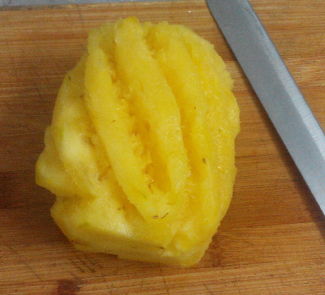 我的削菠萝皮的功夫还可以吧!看到这个菠萝肉,有没有很想吃的冲动呢?