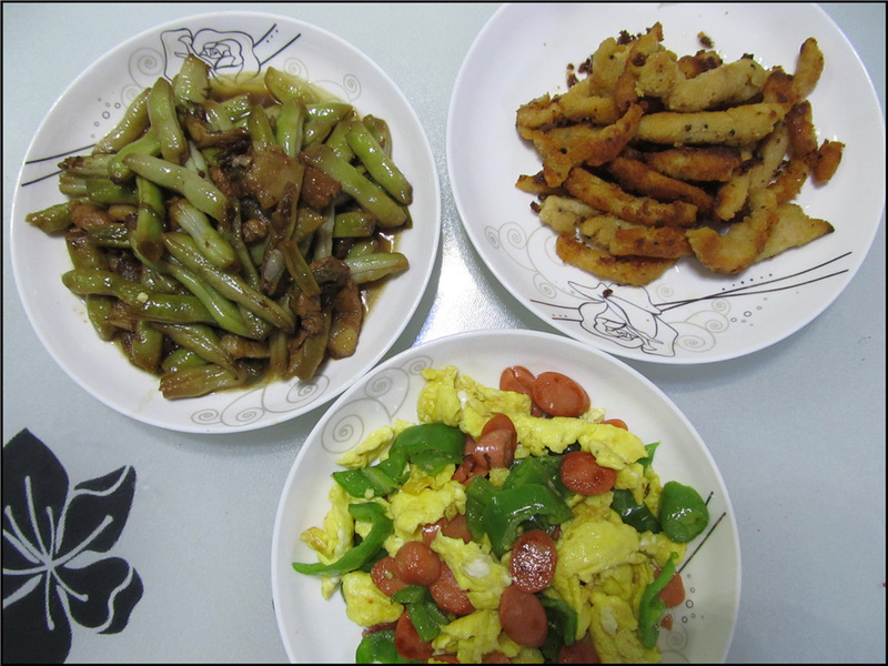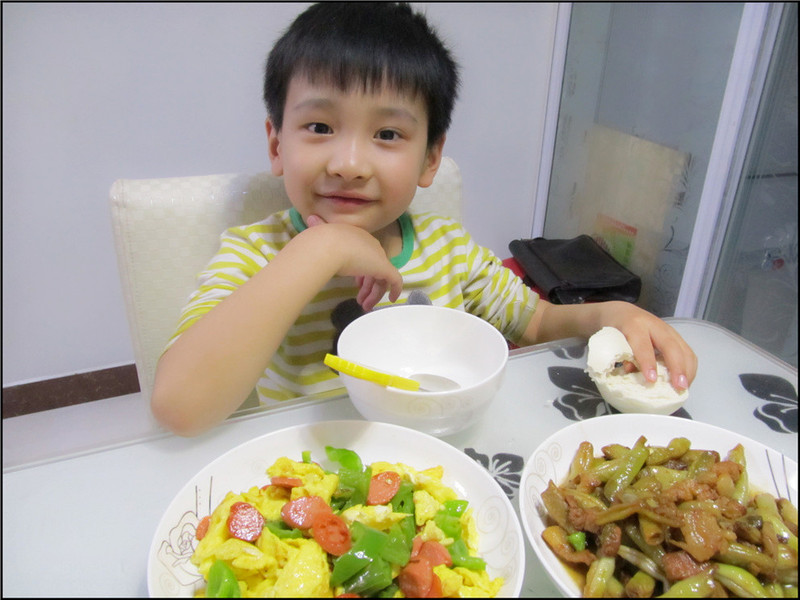 米豆炒肉和青椒炒肉的方式差不多,先是把肉炒了,然后放入掰好的米豆。我不知道其他地方是叫这个菜是什么名字,我们这里叫米豆,我也就这么叫了。最后熬了一个太子粥,是在超市里买的各种米和粥需要的材料的混合料,直接煮就可以。里面含有大米、紫米、百合叶、莲子、冰糖等等,比较有营养,Aric也喜欢喝的一种粥。不过在吃饭的时候粥才刚熬好,又凉了一些,最后才喝的。 虽说今天炒了三个菜,但都是比较简单又没有太麻烦的。周一的工作实在忙得很,Aric回家后就说饿,来不及买菜,只能找简单的食材做出简单的菜式。好在Aric比较满意,吃了大半个馒头,喝了一大碗的太子粥,然后吃了不少的菜,饱饱的高高兴兴的才去玩。老公估计要很晚才回来了,等他回来再自己热菜吃,或者再煮馄饨给老公吧。而我呢,晚上要少吃,只喝了一碗粥就完事了。 ![]() 炸的鸡柳 ![]() 火腿肠鸡蛋炒青椒 ![]() 米豆炒肉 ![]() 虽说在幼儿园里4点钟就有吃晚饭,可是Aric回家后还是得正儿八经的吃一顿,搞得我家每次晚饭比午饭要多一些,辛苦啊。不过看到Aric吃的饱饱的很喜欢的样子,又觉得蛮有成就感的呢。