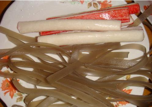 2、第二个下了一些蟹肉棒和宽粉,宽粉是我的最爱,我很喜欢吃。