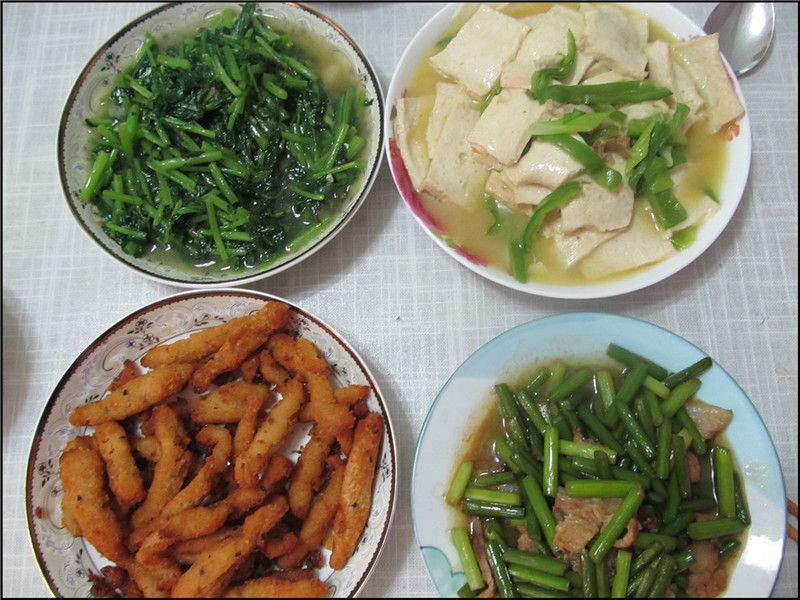 昨天晚饭去了老妈家吃的,因为老公和老爸出差,只剩下我、老妈和Aric三个人,老妈听说我在家炸了里脊有点糊,就自己也炸了一盘让我学学,果然和我炸的不一样呀,看老妈炸的,无论色泽还是口感都比我做的好多了,真心佩服老妈。老妈也很骄傲,说每做一道菜都得用心,不要着急,用心了才会做的更好吃。我连连点头,受益匪浅,果然姜还是老的辣,果然还是老妈做菜最好吃。 另外老妈炒了清炒藤蒿,非常好吃,很清淡的一道菜。因为老妈现在也是比较胖,晚上比较少吃饭,或者是做的很清淡。知道我现在处于减肥中,老妈就特地做了清炒藤蒿来给我尝尝,很简单的做法,少油少盐还是比较多的水分。另外蒜薹炒肉也是不错的,先把肉炒了然后放入蒜薹,这个蒜薹炒制是要注意的,毕竟炒的时间短会不太熟,如果炒的时间长会太熟,还有火候也要注意。