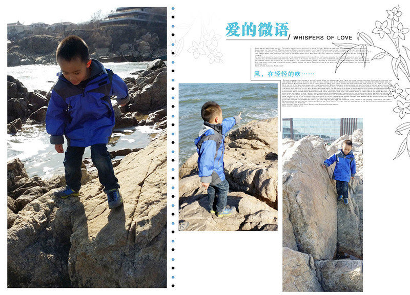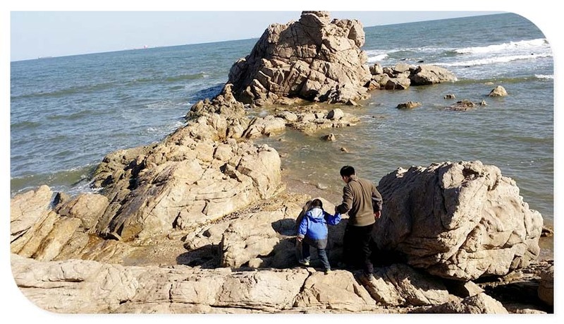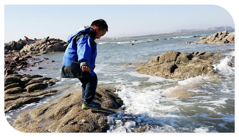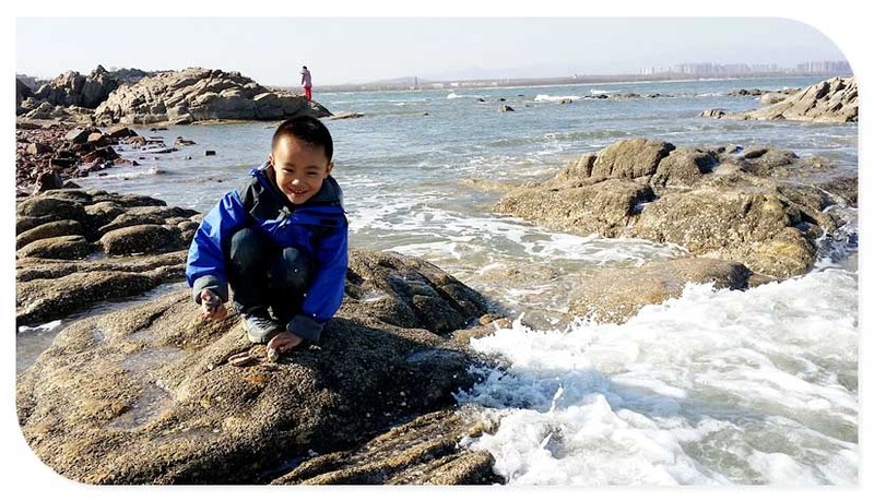 小家伙突然有了想去海边玩的念头,可是由于周末我们要上的课时间也是挺紧张的,所以只能是见缝插针的来满足一下孩子的心愿。这次来到海边后竟然赶上了涨潮,海浪滚滚一层一层的涌过来,一浪高过一浪的打在岩石上,如此的有力量,有魄力,让小家伙也跟着兴奋起来。