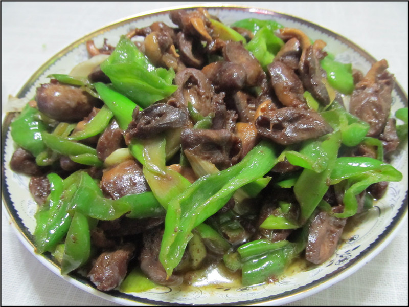 最近减肥就很少出去吃饭了,不过哪怕在家里做饭,也得用心的做,因为老公工作一天回来很辛苦,而Aric呢,哪怕在幼儿园里吃过了饭,回家也要吃饭。有时我不想做了,老公又恰巧不回来,就让Aric随便吃点饼干、面包一类的,偏偏小家伙吃完以后就说吃饭,我说你不是吃了吗?Aric就会很诧异的问我,面包饼干是饭吗?额,看来给他养成了每天三顿正餐吃的习惯,不做饭小家伙不习惯啊。 老妈买了一些鸡心,我从来没做过内脏的家常菜,所以这次老妈特地多买了一些给我,让我回家炒着吃。这个鸡心感觉挺难做的,我不吃,更不知道做出来的会怎样。老妈说就像辣椒炒肉一样,好吧,我来试试。洗干净了鸡心以后就当做肉来炒,然后放入青椒葱花,最后放入调料即可。看着这一盘鸡心,想着这得多少只鸡啊,就感觉特别好笑。最后老公吃说鸡心炒的有点干,看来我还是没做到家啊。