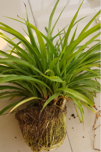 首先我们把破的花盆里面的花移出来,这一盆吊兰长得年数很久了,还是我们那时候装修的时候买的吊兰,已经有十年了,所以吊兰的根须很长,交错在一起,已经不能分开了,他们的生命力非常顽强,就算是我不管他们,他们还是长得郁郁葱葱的,很茂盛呢。
