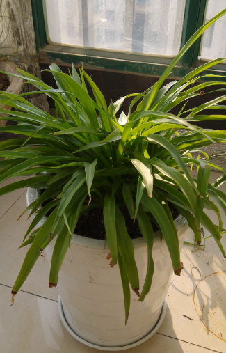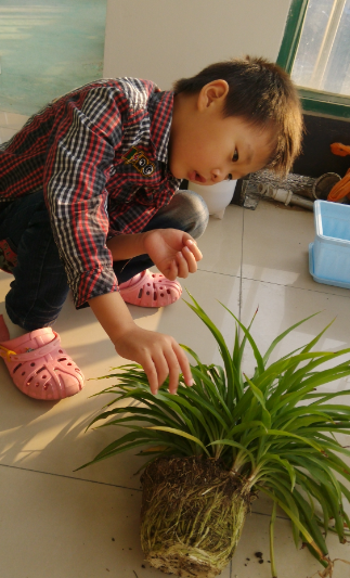 然后我们把一个完好的花盆弄好,把吊兰放进去,点点帮助妈妈扶好吊兰,然后我把准备好的营养土填进去,填满营养土以后,这样一盆新的吊兰就种好了,这样的一盆吊兰很漂亮,白色的花盆,绿色的叶子,衬托出春天的气息了。