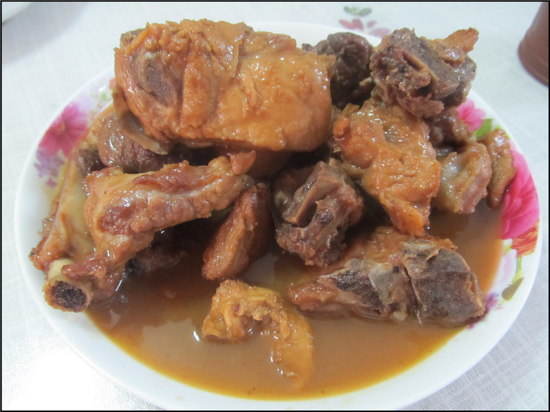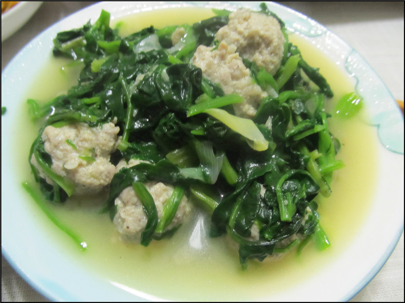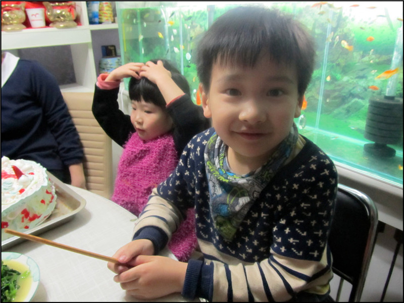 另外红烧鲅鱼,这是老公去青岛出差带回来的鲅鱼,比起我们本地买感觉更鲜美一些。红烧排骨是很受好评的,老妈一般选择的是小肋排,吃起来更容易了。还有冬天剩余的猪冻肉,现在我才知道,原来这个猪冻肉是需要每隔几天煮一次的,否则很容易坏,而在现在这已经入春的季节,猪冻肉的保质期也越来越短,这已经是最后一次吃了,下次吃就要等到下一个冬天了,所以大家很珍惜。 辣椒炒肉、菠菜炖丸子这是家常菜,也获得大家的好评,而凉拌菜就是芹菜拌腐竹、鸡蛋皮粉丝拌黄瓜,另外加了一个老妈炸的花生,因为裹了面,比起单单只炸花生要好吃的多。一共9个菜,长长久久,加上蛋糕,凑了个十全十美,哈哈,老人家都是很在意这些寓意的啊。吃着美味的家常菜,喝着饮料,偶尔吃口蛋糕,一家人乐乐呵呵的聊着天,哇,这感觉,只能用俩字形容:幸福。 ![]() 粉丝鸡蛋皮和黄瓜的凉拌菜,我忘记了老妈放的是什么了,因为离我比较远,我就没吃。 ![]() 炸花生 ![]() 凉拌腐竹 ![]() 美味好吃的牛肉哦 ![]() 红烧排骨 ![]() 可乐鸡翅 ![]() 辣椒炒肉 ![]() 菠菜炖丸子 ![]() 晒个小主角Aric吧,小家伙可是超能吃的,而且姥姥和妈妈做的菜可是他的最爱呢。