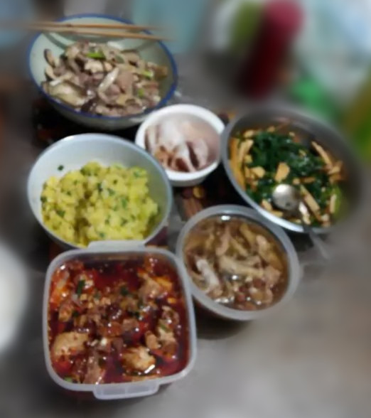 三口人吃这么多的菜是够多了,绝对要剩菜的节奏啊 |