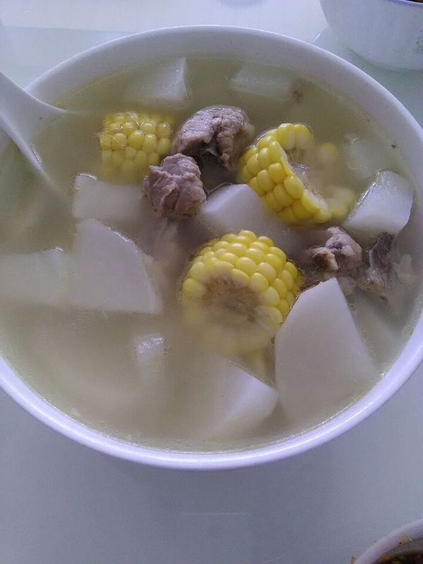 每个周末都会做玉米排骨汤,方便啊。难得休息一下,不想太累了。这个有菜有肉有汤的,加个调料也很下饭的。排骨焯水,加老姜大火煮开放入萝卜和玉米一起炖。