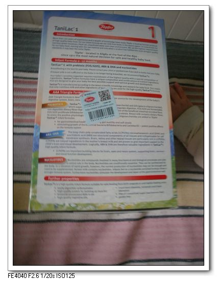 转眼宝宝就5个多月了,到了该开始加辅食的阶段,而且母乳的质量也在逐渐的下降,挑选一款适合宝宝的奶粉就显得尤为重要了!可是作为新手妈妈,面对市面上这么多的奶粉品牌,真的是有些手足无措,这次在宝宝地带上看见了特福芬奶粉,于是就申请了,没想到真的中奖了呢。![]() 从申请到收到产品大概也就一周的时间吧,速度真的是非常的快呢。这个活动很给力,收到的好大一盒奶粉,看看宝宝抱着奶粉的样子,真的不敢相信,好大一盒啊,百度了下好几百呢。 ![]() 产品是特福芬阿尔高婴儿配方奶粉1段,适合0-12个月的宝宝,我家的宝宝正好适合,重量是600克。怪不得看起来好大啊!这款奶粉还是欧洲原装进口的呢。每盒奶粉上面都有一个查询真伪的码,查询还可以获得积分。产品的日期有点远,不过还有一段日子才过期到2015年底,所以要抓紧给宝宝尝尝喽。下图中间那个就是查询贴了。 ![]() 产品盒子设计的颜色很丰富,就像到了欧洲的小镇农场,阳光充足的大自然,蓝蓝的天绿绿的大草原,还有健康的大奶牛,难怪宝宝拿着就不撒手了呢,产品的影响成分很丰富,想宝宝需要的物质都有,还给出了详细的喂哺量,这样我这样的新手妈妈就不用再去求助于其他地方了,省时省力,冲调方法也写的非常详细。 ![]() ![]() 更值得一提的是特福芬阿尔高传承了特福芬的百年品质,奶源采用营养物质更加丰富的阿尔卑斯山地奶,欧盟严苛生产检测,产品符合欧盟中国双重标准,活力AAA全维营养配方通过调节蛋白质配比,添加益生元、核苷酸和DHA&ARA等,给宝宝A级免疫力、A级消化力、A级智视力。同时采用葡萄糖酸亚铁这种有机铁作为铁元素的来源,大大的提高了铁的吸收效率,预防宝宝缺铁性贫血的发生。产品中不含麸质谷蛋白,不含蔗糖,预防宝宝出现过敏、龋齿和虚胖的现象。这些就是我们所谓的不上火吧,喝完了不用担心宝宝几天不拉大便而难受。 ![]() ![]() 给宝宝冲了一点试试看,本来以为宝宝不是很喜欢和,谁料有机奶粉就是好,宝宝爱喝还不上火,有机的确实是个好东西,只不过国内还没有达到那个标准。另外特福芬奶粉是德国原装进口的,喝着心里也踏实。