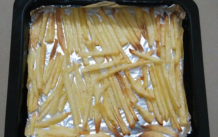 ![]() 想吃薯条其实挺简单的,自己买上几个土豆,切切洗洗泡泡,再放到油锅里一炸,香喷喷的薯条就随时可以吃了。所以,宝贝们经常想吃薯条的时候,我都会自己炸上一点,然后让他们就着蕃茄酱吃,每次宝贝们都是把一盘子的薯条瞬间就解决掉了,还会说妈妈你炸得太少了。很想告诉宝贝们,这种油炸的东西不能多吃,不仅吃多了容易上火,而且也没有营养,所以当然不能吃太多了。 ![]() 最近宝贝们又说很久没吃妈妈炸的薯条了,昨天刚好超市的土豆打特价,既新鲜大个又便宜,让我想到了多买几个可以给宝贝们做薯条了。买回来的土豆计划下午的时候炸,这样炸好后再去幼儿园接大宝,回来就可以吃了。后来突然想到了烤箱,也不知道烤箱烤出来的薯条好不好吃,因为没有实践过,于是在万能的下厨房搜索了一番,没想到还真有用烤箱烤薯条的,而且操作起来更简单方便。因为用油炸的薯条还必须先放冰箱冷冻,而用烤箱烤的话可以省略这一步骤,于是就想一定要照方法实践一下。用烤箱烤的薯条要比油炸的吃着健康很多。 ![]() 烤箱版的薯条,方法特别简单:需要的材料除了土豆以外,就是盐巴和油了。 1. 土豆削皮切粗条,然后用水冲去表面淀粉。 2. 锅里放清水,加一勺盐巴煮沸。 3. 把切好的土豆条放煮沸的水中烫2分钟捞出。 4. 把烫过的土豆沥干水,放一勺盐巴和油搅拌均匀。方里子说的是放橄榄油,家里没有橄榄油,我直接放的炒菜用的玉米油,也可以根据自己的口味加其他的调料。 5. 烤盘铺上锡纸,在锡纸上均匀刷上一层油。 6. 把拌好油盐的土豆铺在烤盘内。 7. 烤箱230度15分钟出炉,这是方子上的,可能我家的烤箱温度不够吧,我大概烤了30分钟的样子,比较喜欢吃烤得更干一点的薯条。 ![]() 我刚开始把烤箱调成230度15分钟,然后去幼儿园接孩子了,等我回来的时候发现薯条的水份还有挺多的,又接着烤了15分钟才出炉的。 ![]() 烤箱版的薯条味道也很棒,外焦里嫩,吃起来比油炸的更爽口,没有油腻的感觉。大宝的评价是比肯德鸡的还要好吃,小家伙还说要是有蕃茄酱和可乐就更美味了,也不用去肯德鸡吃了,呵呵。有了这次经验,以后想吃薯条就更简单了,直接把工作交给烤箱就行了,简单、美味、干净又实惠,何乐而不为。