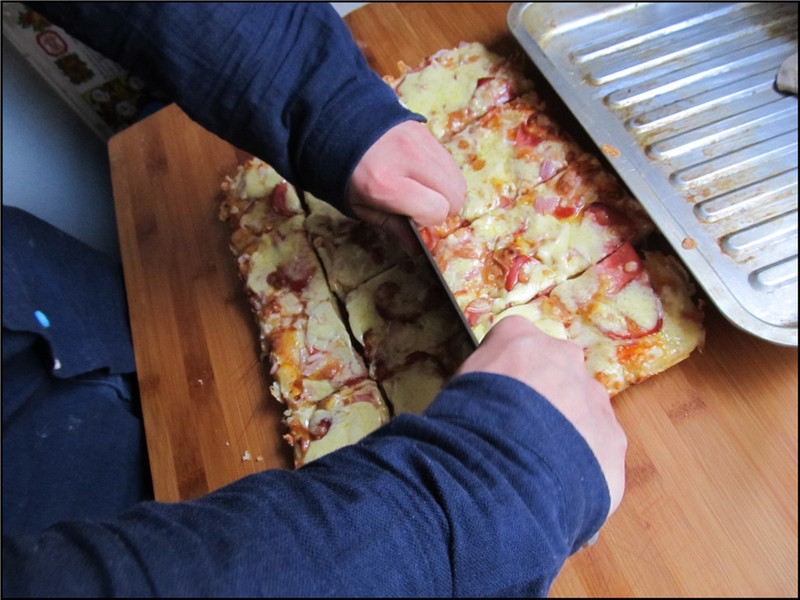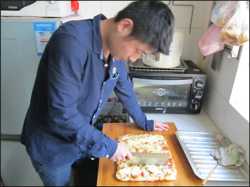 披萨烤好了,老弟拿了出来观察,闻着还是蛮香的,只是这卖相嘛,差强人意了。老弟拿出刀来切开,我拿起一块品尝,额,貌似有点酸。老弟立刻说:“咱妈发的面。”老妈也在旁附和,说因为时间有点赶,面没发好。好吧,再继续品尝,芝士虽然放的比较多,可是总感觉比起披萨店的不是一种感觉。因为我在必胜客做过兼职,所以做披萨还是可以评判的,只是时间太久,忘记怎么做最基本的面了。 总的来说,老弟这次做的太过家常一些,没有什么特色之处,如果想开披萨店,还需要提高技术方面。另外老弟现在算得上是两眼一抹黑,不懂怎么做,不知道需要什么,这就是个很大的问题。因此最终家庭会议结果是,老弟有机会还是学习一下披萨的制作方法吧,等他可以烤的出让我们都觉得美味的披萨,那么再开披萨外卖店才可能有所成就。老弟也吸取了教训,说以后多实践,而我们,就是他的试客。 ![]() 第一次拿出来的披萨,看起来芝士比较少。 ![]() 第二次拿出来的披萨,芝士倒是多了,可是总感觉不是那个样子啊。 ![]() 很坚定的老弟,心情还是蛮兴奋的,哈哈。 ![]() 切披萨,准备分给我们这些试客吃。 ![]() 还别说,老弟这股子精神气是值得我们称赞的。 ![]() 看卖相一般,口味也一般,面没发好有点酸,芝士也没有拉出丝来。
