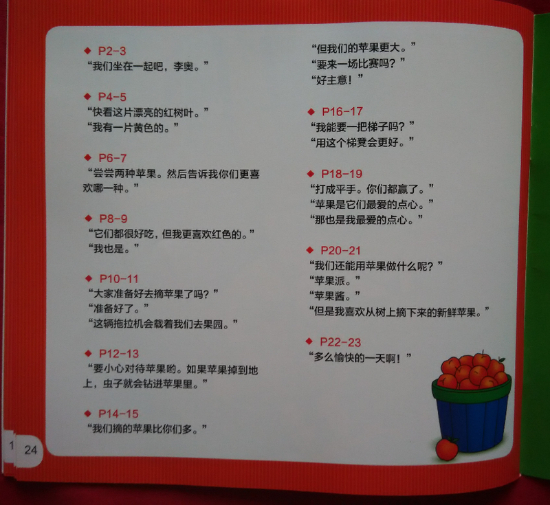 ![]() 小快活卡由是宝贝很喜欢的一个人物,宝贝第一次接触他就是在地带的绘本分享里,当时我们获得了一本上下左右翻翻书,在这本书中,宝贝也第一次接触到了英文单词和简单的英文句子,后来我还给宝贝去下载了卡由的动画片,虽然是全英文的,但是宝贝仍然喜欢看。 这次宝贝再一次看卡由的《一起去摘苹果》,倍感亲切。拿到这本书的晚上,宝贝就迫不及待地要求我给她读了。 这本书的内容比较有意思,是从我们生活中提取的,主要讲了卡由和朋友们一起去果园摘苹果的事情。他们在果园里品尝了不同颜色的苹果,还进行了摘苹果比赛,最后还知道了如何做苹果汁,他们在果园度过了愉快的一天。以后有机会我也带宝贝去摘摘草莓,让宝贝也感受下这样的快乐! 书中是中文旁白和英文对话相结合,英文对话内容用泡泡引起来,旁边会出现说话人的头像,这样宝贝在听的时候就知道是谁在讲话了。对话里的重点词汇用橘色标出,特别显眼,在另一页的角落有这些重点词汇和它们的中文意思,设计得非常贴心!书的最后一页还有每一页英文句子的中文翻译,当家长不知道如何翻译的时候可以参考这些中文翻译。书在网上还有音频,如果有的地方读不好,家长也可以学习。 在读这本书的时候,不仅是孩子在学习,我们家长也是一个复习的过程,毕竟读书的时候学的英语之后都没有用过,很多都还给老师去了。在我给宝贝读的时候,她习惯跟着我读句子的最后一个单词,有些简单的句子我则会要求宝贝跟我一起读,平时在生活中也可以去运用,比如:“What a wonderful day!” “Be careful。” “Good idea!”经过反复练习,宝贝有的时候也会想到用上这些简单的句子。 之前宝贝有学过一些颜色的词语,在看这本书的时候,宝贝会使用“red、yellow”,“apple”也会说。可见平时的积累还是很有作用的,讲积累的词汇和句子在生活中多加运用,相信宝贝以后学习英语不会是件难事情。在陪宝贝学习英语的过程中,我也能够把之前学过的英语捡回来。 《小快活卡由日常英语300句》是我和宝贝学习英语的一大帮手。因此,非常感谢宝宝地带和出版社给我们提供这么好的学习英语的辅助材料! ![]() ![]() ![]() ![]() ![]() 本作品未经作者许可不得转载,转载请征求作者意见。擅自转载使用,将保留追究其法律责任的权利! |