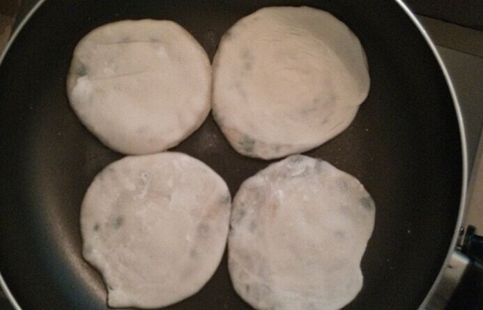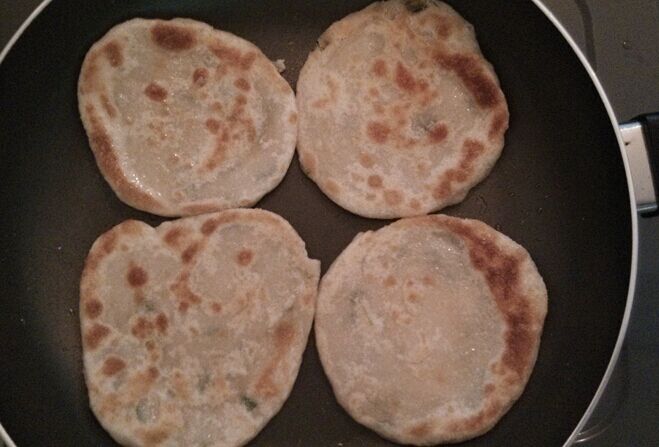 前段时间超市促销,有一个心仪已久的平底锅打特价,赶紧入了一个,只是买回来放了有小半个月吧,都还没派上用场。一直想用来做点什么,可是就是没有行动。对于各种煎饼,平时很喜欢买来吃早餐,尤其是宝贝们也喜欢,楼下的葱油饼摊,我们几乎每个星期都要买那么一二次,配上自己榨的豆浆,真的是美味。不过,煎饼都是买来吃,还没有自己动手做过任何煎饼、烙饼之类的面食。