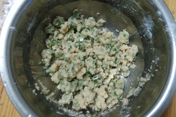 ![]() 昨天的早餐,小宝又喊着要吃饼,带他去买的时候,竟然发现老板休息,没有来摆摊,看着宝贝失望的眼神,我安慰小家伙,说妈妈明天给你做饼吃。回来后就上万能的下厨房搜索去了,刚好家里还有现成的平底锅,于是就有了自己的第一次络饼了。废话少说,上方子了。 ![]() 面团需要的材料: 普通面粉:200g 盐:2g 沸水:100g 冷水:40g 做法:把面粉和盐放入大碗中,冲入沸水用筷子快速搅拌,然后再加入冷水搅拌,用手揉成光滑的面团,盖上湿布饧20分钟。 ![]() 油酥需要的材料: 玉米油:30g 普通面粉:60g 葱花:适量 五香粉:适量 盐:少许 做法:把面粉、葱花、五香粉、盐一起放入耐高温的容器里,再把油倒锅里烧热,有点冒烟的时候,再把油倒入,搅拌成油酥备用。 ![]() 饧好的面团取出再揉光滑,用刀分切成8等分。 ![]() 取其中一份揉圆再擀成薄饼,在饼表面上涂上油酥。 ![]() 把涂好油酥的饼卷起来,再搓成长条。 ![]() 把长条卷起成螺旋状的一团。 ![]() 用手按扁,再擀成薄饼。 ![]() 重复上面的步骤,8个饼全做好了。 ![]() 平底锅内放少话油,润锅即可,放入做好的饼,小火慢慢烙至两面上色并且熟透即可。 ![]() ![]() 香喷喷的葱油酥饼来了,没想到第一次烙饼也能这么成功,满屋子葱油饼的香味,还很烫的时候,小宝就迫不急待地想吃了。8个饼,小宝连吃了2个,我呢一口气吃了3个,小宝看我吃了这么多,还赶紧制止我说,妈妈别吃了,剩下的要留给哥哥吃。很有爱的小宝,平时有什么吃的都不忘记要给哥哥留一份。 按这个方子做饼,需要的材料不多,操作也比较简单,不过在烙饼的时候要注意,一定要小火慢慢烙,而且油不要放太多,这样烙出来的饼外酥内软,还很香。 ![]() 本作品未经作者许可不得转载,转载请征求作者意见。擅自转载使用,将保留追究其法律责任的权利! 个性签名