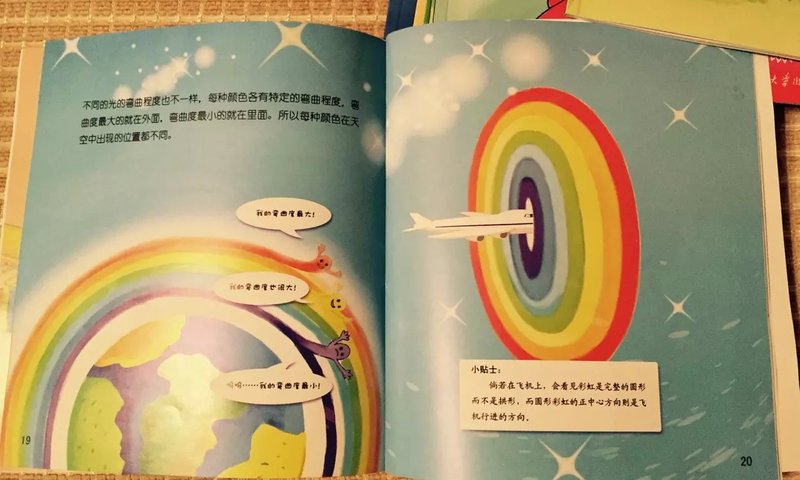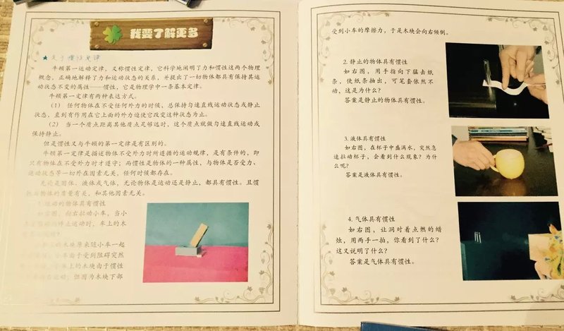 ![]() 物理很有趣?物理很有趣!虽然是文科出身,但是中学时候最喜欢的科目就是物理了!因为物理是最贴近生活的一门课。最喜欢物理还有一大原因,就是可以动手做很多有趣又简单的实验,在各种物理变化中感受世界的惊奇,以及把所学的物理知识应用到现实中那种成就感。好奇心和探索意识是孩子们的天性,当他们一天天长大,知道得越多,问题也就越来越多。面对生活中很多我们司空见惯的现象,他们会问个不停。比如,为什么鸟会飞我不能飞啊?为什么鱼生活在水底啊?为什么我不能进到电视里跟朵拉一起去探险啊?......... 面对孩子如此之多的为什么,我倍感知识的贫乏,根本不知道该如何给孩子解释。《物理很有趣》的到来,让我大大松了一口气。这一套书一共13册,内容丰富,几乎涵盖了我们日常生活中所有的物理现象和原理。 ![]() 每一册的封皮画面色彩都很靓丽,人物形象刻画生动有趣,故事感十足。《磁铁的魔力》、《电的旅程》、《飞机起飞啦》、《美丽的彩虹》、《苹果从树上掉下来》、《跷跷板的秘密》、《请系好安全带》、《鱼儿水中游》、《声音的旅程》、《我被开水烫到了》、《我摔倒了》、《神奇的放大镜》、《鱼缸的水变少了》。这些标题非常普通,一看就非常有亲切感,跟我们的生活紧密相关。这些标题文字都采用凹凸工艺,触之有感。让孩子一看就被吸引。收到书刚打开包裹,小家伙就自己挑选了两本滋滋有味地看起来。 ![]() ![]() 绘本故事类书籍,是家长和孩子们的大爱,绘本故事让孩子更加感性,更加细腻,但是,随着孩子年龄长大,开阔孩子视野、激发孩子理性思维的科普类书籍必不可缺。这套《物理很有趣》采用最受孩子们喜欢的绘本形式展开,主人公,小男孩多多穿梭于每册书中。每一册都以多多的日常生活为主线,以讲故事的形式,从一个个孩子们最容易产生疑问的小小的生活现象引出一条条相关的科学知识,不时地顺带出一些历史典故和科普拓展,极大地丰富了孩子的视野,激发孩子爱动脑、乐于动脑的好习惯。 ![]() ![]() ![]() 书中内容虽然都是些日常的生活故事以及物理科学现象,但是绘图设计一点儿不输故事绘本,图画文字时而俏皮幽默时而优美动人。 每册书末尾都有一些有趣的科学游戏或者物理小实验等,材料和操作方法都很简单,大大激发了孩子自己动手探索物理奥妙的兴趣。 而我在陪孩子亲子共读的同时,也在不断地成长进步着,明白了之前很多不明白的生活现象,也跟孩子一起开阔了视野,认识到了物理学在生活中的广泛应用。更加深刻地意识到学习物理,好处多多,哈哈。 ![]() ![]() ![]() 科学,源自生活,又可用于生活!我想,这是这套书最想传达给孩子们的道理。一切脱离了生活和现实的科学,都是没有意义的。 这套少儿版科学丛书适合3-6岁亲子阅读,7-10岁自主阅读。套书采用半开式盒装设计,便于收纳存放和随时翻阅。加上家长的合理解读,亲子互动做实验,真的是一套不错的少儿物理启蒙百科书!