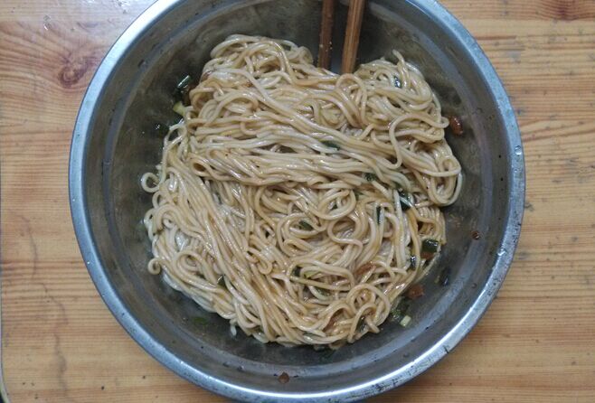 ![]() 到了菜市场,买了菜,路过面摊,小宝突然就停下不走了,看到他盯着面条,我问是想吃面条吗?小家伙猛地点头,终于有想吃的了,那就买面条吧,两个人只要一块钱的湿面就行了,买完面条准备回家给他煮鸡蛋面条了,平时都是这么吃的。可是小宝一进门就直奔冰箱,拿出了昨天买的六月香的豆瓣酱,说要把这个放在面条里吃。 ![]() 说到这个酱,其实是昨天在超市买的,平时几乎没有买过这种酱,总是心里想着可能会不好吃,所以也不想尝试了。刚好昨天超市的这款豆瓣酱在搞活动,现场还有试吃的活动,就是煮好的面条,放点酱上去给客人吃,觉得好吃的话买的人就会多了。小宝看到围着好多人他也凑热闹地跑过去,从阿姨手里拿了一小杯面,吃完了以后还不过瘾,说还要吃,然后那个阿姨就说小朋友这么喜欢吃啊,叫妈妈买一个回去做给你吃吧。小宝就回过头来喊着我买,而我也有点犹豫,毕竟没买过嘛,阿姨可能看出来我的想法,赶紧拿了一杯给我试吃,结果还没放到嘴边就被小宝给抢了,弄得阿姨也在旁边哈哈大笑,又重新拿了一杯给我,这下我们都吃了3杯了,不买都觉得有点不好意思,反正价格也不贵,豆瓣酱再加上酱油一起十几块钱,最后就买了一份回来,到家的时候还让小宝帮我把酱放进了冰箱里。没想到小家伙竟然就一直惦记着这个呢。 ![]() ![]() 既然宝贝说要吃豆瓣酱拌面,那就只好满足小家伙的要求了,先把面条下锅煮熟,本来想直接把酱浇在面条上吃的,可感觉这样会不会不太好,后来自己想出了一个办法,在热锅放上点香油,然后再把酱放到油起一起炒炒,顺便又切了点葱花放进去,刚好小宝喜欢吃葱,放点葱味道也会更香一点。炒好的酱直接浇在了面条上,这样确实比煮鸡蛋面要简单呢。拌好的面条感觉看相还不错,小宝老远就闻到了香味,迫不急待地想要吃了。我用他平时吃饭的碗给他盛了一碗,小家伙拿起筷子就自己吃起来了,看他的吃相就觉得味道不会很差。剩下的我也开吃了,感觉味道还不错,和外面的拌面味道差不多呢,哈哈,是不是有点臭美呢。 ![]() 一块钱的面条,够我和小宝吃一顿,平时我不怎么喜欢吃面,都是偶尔吃吃。 ![]() 面条水煮后捞出,要买那种不容易糊的面条,可以适量地加一点点水,炒好的酱直接淋在上面,下次再煮可以考虑往酱里加点瘦肉沫之类的,可能味道会更好。 ![]() 拌好的面条,看着是不是不错呢,给小宝盛了面条之后,剩下的我又放了点辣椒进去,味道更好了。简单的一顿拌面吃得我们娘俩饱饱的。