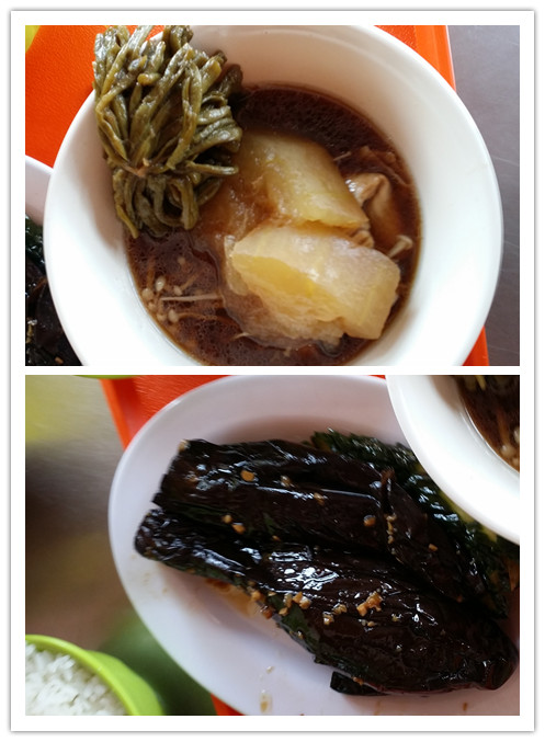 白色的那个是大萝卜,大块的。还有一把豇豆,是用线系上的,味道一般,只有自己吃了点,老公和孩子都不喜欢吃的。另外还点了2个茄子,这个还是挺好吃的,其实所有点的菜里面最好吃的当属那根黄瓜了,一根黄瓜切成蓑衣黄瓜的摸样,口味酸酸甜甜,清脆爽口的很下饭,这个是最好吃的却忘记拍照了。主食是米饭,另外这里的米汁很好喝的,而且还是免费的,小家伙喝了2碗呢,因为米饭是捞米饭,口感有些硬,考验牙口啊。