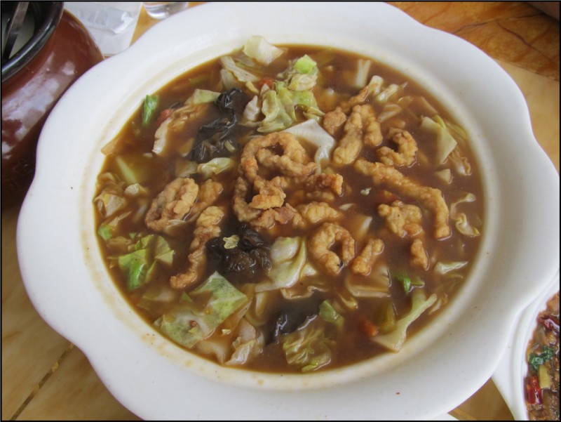 粥是必须要点的,给老爸和老妈点了红枣板栗粥,老爸爱吃红枣,老妈爱吃板栗,正好合适。菜就是秘制风干鸡、烩里脊、肉末粉条、土豆丝。四菜一粥,倒也适合我们三个人的饭量。只是老妈说有点多了,可是好歹是个节日嘛,肯定不能两三个菜就打发了的。如果不是老妈的阻止,估计我还想点两个特色的菜。而其中肉末粉条老爸最喜欢,绘里脊是老妈最喜欢的,秘制风干鸡太干不大好吃。 不过不得不说,这里的粥确实煮的够好吃,老妈说她煮的会比粥铺的更好吃,无非就是料加的多一些,粥煮的很烂,这样吃起来也比较爽口而已。不管怎样,老妈都是很开心的,因为中午是女儿的时间,下午是儿子的时间,要去我家弟弟那里吃饭。而礼物嘛,也一个都不少,我有给老妈钱买衣服,毕竟我选的老妈会不太喜欢,另外送了一双鞋子。而老弟和弟妹就给老妈买了两件衣服,老妈幸福又快乐的度过了母亲节。 ![]() 肉末粉条,有点辣,不过挺好吃的。 ![]() 烩里脊,是里脊、黑木耳、包菜一起炖的菜,有点酸也很好吃。 ![]() 清炒土豆丝,真的蛮清淡的。 ![]() 秘制风干鸡,有点干,还可以。 ![]() 美味的红枣板栗粥,很浓厚好喝的粥。