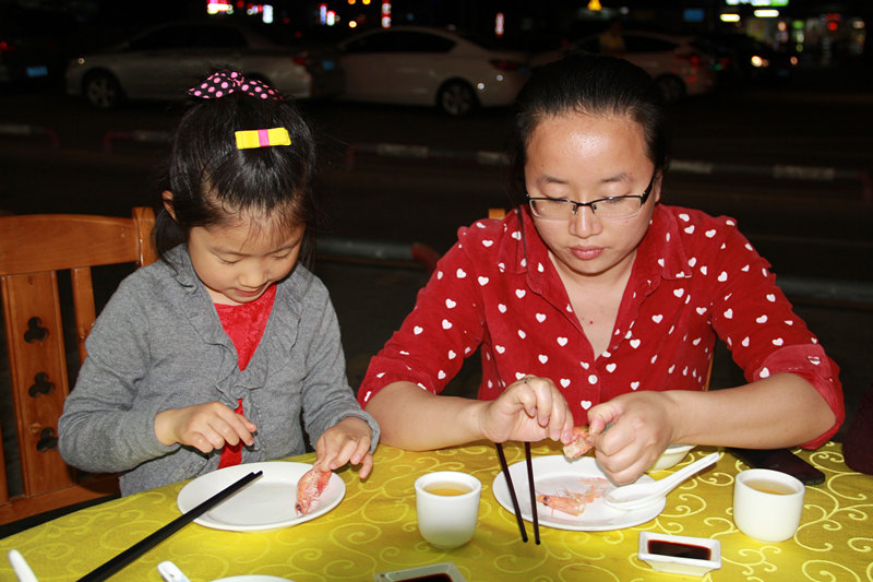 早上吃过早饭,我们一行人就见面了。寻思着太远的地方来不及去,东部华侨城是一个不错的选择,所以我们就启程了,表弟开着小猪的车,一路畅通,大概车行一个小时,抵达目的地。 逛完东部华侨城,表弟提议去不远处的海鲜市场吃晚饭。海鲜,是我和敬仪都钟爱的食物,尤其是虾和螃蟹,还有花蛤、扇贝,都是我俩的大爱呀。在海鲜市场吃海鲜,不但海鲜新鲜,价格还便宜。比在普通的饭馆里点海鲜要放心省钱。于是我们又驱车半个多小时,来到大小梅沙附近的海鲜市场。 这片海鲜市场比较成规模,这家海鲜店旁边就是几家海鲜餐厅。从海鲜店里买到海鲜,再在旁边的饭馆里加工,享受一条龙服务。我们挑了虾、螃蟹、皮皮虾、花蛤、扇贝这五样活海鲜,花了一百四十多块钱。 ![]() 然后拿着这些现买的活海鲜,到隔壁的餐馆加工,另外点了一个绿叶蔬菜。加工费加蔬菜钱和餐具费一共花了一百多点,也就是说,这顿饭我们花了两百五十多块钱,吃了五种美味海鲜。还是相当划算的,要知道在餐馆这样的一份菜都得好几十呢。看这大盘的鲜虾,超级多,饭馆不可能给这么足量的。 ![]() 这顿饭现在还让我和敬仪流连忘返,时不常想起来,馋得很呢!敬仪和老妈的观点一致,这顿饭最美味的就是这白灼虾了。鲜虾,还是白灼比较好,稍微蘸一点海鲜酱,真是鲜到了家!! 敬仪对这海鲜酱超级感兴趣,自己用筷子蘸着白嘴吃,吃虾的时候蘸好多酱都嫌不够。可惜走的时候忘了问店家这是什么酱,买一瓶给敬仪带回来就好了哇。 ![]() 俺表弟媳妇儿,敬仪叫阿姨,超级会照顾孩子。虽说她还没有孩子,但对敬仪超级有耐心。一直给敬仪弄吃的,剥虾、弄扇贝。。。觉得敬仪凉还给她穿衣服、扣扣子,以后肯定是一个能干妈妈! ![]() 第二受敬仪欢迎的就是这蒜蓉粉丝蒸扇贝了,不过敬仪不爱吃里面的葱,总要吐出来,吃得有些费劲。 ![]() ![]() 这是椒盐皮皮虾,炸得干干枯枯的,里面的肉都被炸没了的感觉,剥出壳来都没啥肉。跟白灼虾比起来,味道和口感都差一些。 ![]() 这螃蟹这么做也有些浪费,酱香炒的。不知道是螃蟹太小肉少,还是炒着炒着把肉给炒没了,感觉没啥内容。还是清蒸的好吃哇,敬仪超爱吃螃蟹的小人儿,这次没怎么吃到螃蟹。 ![]() 辣炒花蛤,是我的大爱,可惜有些辣,敬仪没怎么吃。炒得不错,虽然花蛤个头有些小,但肉肉确实不少。里面的配料红椒、生姜、大蒜都超级美味。不愧是俺的大爱呀!! ![]() 总的来说,这顿饭还是挺棒的。俺们每个人吃得心满意足,肚皮鼓鼓。又来到附近的干海鲜市场逛逛,买点干货,这顿海鲜大餐就圆满结束啦!!
