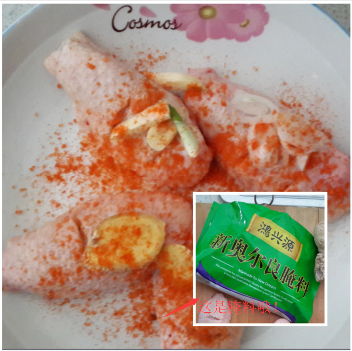 ![]() 话不多来,开始做饭喽 1、将买来的鸡翅清洗干净,然后在上面做好花刀,方便入味儿哦! ![]() 2、适量的葱、蒜切丝,姜切片(我是怕姜丝带入会辣,所以给宝宝做的食物都是片哦,取其辣味即可!)然后加入适量的新奥尔良腌料,这个腌料不是吹啊,是真滴真滴很好吃哦 ![]() ![]() 3、将鸡翅用手抓匀,过十几分钟再次翻面抓匀,抓匀的过程多给鸡翅做做按摩哦,这样肉质比较的松散,入味也透彻哦! ![]() 4、腌制好后,倒适量的脆打粉在纸上,将鸡翅均匀的沾满脆打粉,这个脆打粉在炸东西时真的是好东东啊,炸出的东东好脆好脆的啊 ![]() 5、准备入锅的鸡翅们 ![]() ![]() 6、锅中放适量的油,待油热后依次放入鸡翅,待一面金黄后翻面炸制,两面都成金黄色就OK啦,准备出锅! ![]() 7、看看,装盘喽,来点蒜苗做做装饰吧,很不是很美哦,香喷喷的有没有,酥酥脆脆有没有?最重要的是口水有没有? ![]() ![]() 小子本来是自己乖乖的玩积木的,这不我一喊:儿子,鸡翅出锅啦!儿子一看到这鸡翅立马跑过来说:真的啊,真香啊,妈妈,谢谢你给我炸鸡翅!哟,小子懂得不少啊,还知道这是我给他炸的鸡翅呢,嗯嗯,好孩子,有你这句话啊,妈妈的劳动是值得的,好了开吃吧,一会儿功夫四个鸡翅只剩下了8根小骨头哦! 哈哈,是不是很简单又很快捷的午餐哦,主要是能够满足小家伙的胃口啊,大家有时间也可以做给宝贝吃哦!![]()
