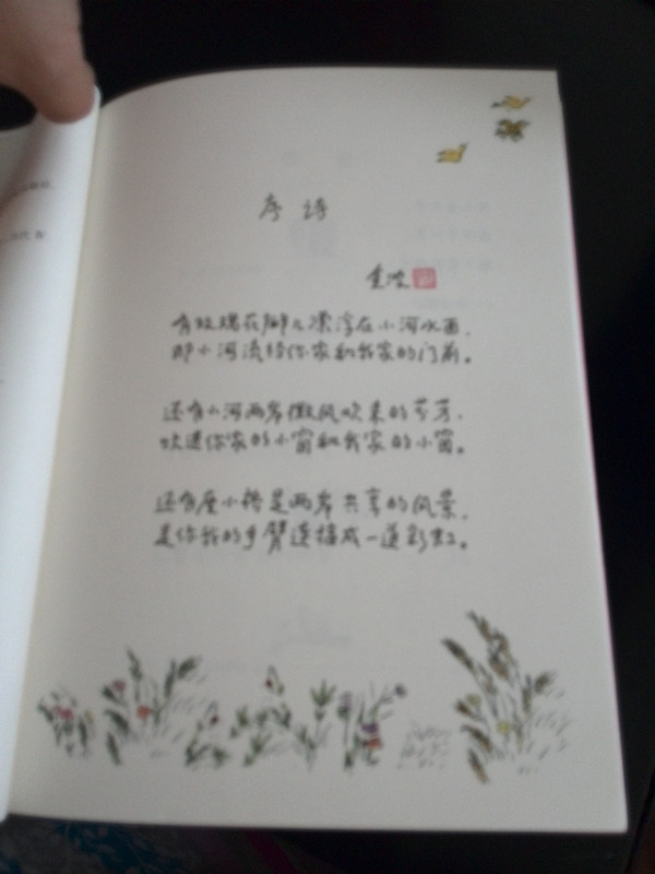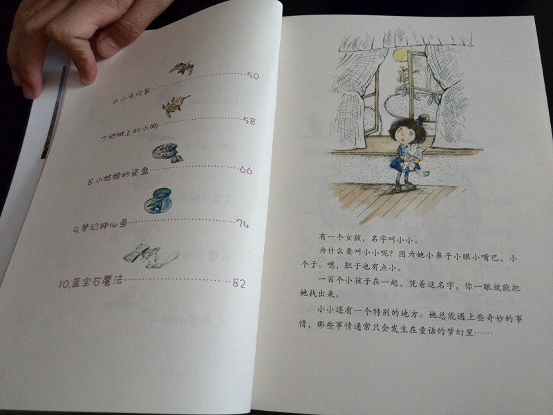 这次试读的小小豆系列从书,我中的是《小小的天空,小小的梦》这本,通过这个题目我们就可以看出这是一本关于梦想的书,仔细阅读下来就会发现,其实这是一本关于一个叫小小的孩子的梦想的书。 ![]() 先从书的感官来说吧,这本书非常适合有点文化的小朋友来读,就是比较适合一二年级的小朋友吧,我们果正是一位二年级的小盆友啦,整本书的布局基本就是一页是图画,一页是文字,让孩子读起来既能读到文字,又能通过图画体会出文字所表达的意思,很不错的一个布局。整 本书也是分成10个小故事来讲述的,让孩子读每一个故事的时候都不觉得累,然后一个小小的故事就读完了,坐不住的小朋友就可以休息一会儿再读,对于比较有耐心的孩子当然是可以一口气读完整本书的。书的文字比较大,这样孩子读起来就不会太费劲,配的插图很卡通,、很形象,是本比较适合女孩子看的书。 ![]() ![]() 接下来就是书的内容了,整本书的主体思想就是一个叫小小的主人公所做的一个一个的梦,相信很多女孩子都会这样,那就是经常生活在自己编织的童话梦想世界里。这本书描述了十个由小小的梦想所编织成的小故事:小小的树,红雨伞,英子妹妹的花鞋子,魔术师变出的铅笔,奇异的种子,小鸟风筝,地摊上的小狗,小姑娘的瓷盘,梦幻神仙鱼和蓝宝石魔法。通过小小自己的梦想中的世界来描绘着这个现实的世界。我比较有感触的就是第一个故事:小小的树,之所以叫小小的树,是因为这棵树的第一朵花是小 小看着长出来的,从此她就把它命名为“小小的树”,她每年都和小树一起经历着花开花落的成长,突然有一天因为施工“小小的树”被挖走了,她非常伤心也非常想念这棵“小小的树”,她说树上住着小精灵,会帮助自己找到自己丢失的东西,当然这些大人们是不会相信的,但在小孩子的世界里确实住 着一个小精灵,能帮她实现自己的愿望,因为太过想念,小小就梦想着自己有一天收到了这棵“小小的树”寄来的明信片,明信片的正面是“小小的树”开出的一朵朵美丽的花,这是一个很好的结局,小小就不用再为小树担心了,因为知道这棵“小小的树”在别的地方也一样过得很好。 ![]() ![]() ![]() ![]() ![]() 果说自己最喜欢“魔术师变出的铅笔”,小孩子到了这个年纪可能都喜欢比较有魔法的东西,因为这里面充满了幻想和神奇。小小用这支魔术铅笔写出的来的字非常漂亮,经常得到老师的表扬,要知道小小以前写字是非常难看的,但这支铅笔肯定会越用越短,最后变没的,小小就非常担心魔术铅笔没有以后自己的字又恢复了难看,于是就舍不得再用这支魔术铅笔,然后苦练铅笔字,慢慢地等这支铅笔变短用完的时候,小小用普通笔也出的字也已经很漂亮了,她已经可以不用依赖魔术铅笔了。 ![]() ![]() 所以每个孩子都是一个梦想家,他们的小脑子的天马行空我们大人真的是无法触及的,我们只有努力地去读懂孩子,读懂他们的内心世界。 随书还赠送了精美的明信片,可以当书签用哦!