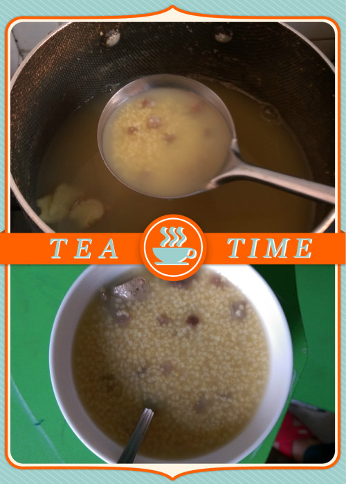 本以为这样就可以吃了,后面还要继续泡,再等一天吧,又进冰箱了。好事多磨啊,想吃的点好的容易嘛。 前处理的周期真的好长啊,差不多第五天才终于可以做了。第一次弄这个,选了一个相对简单的——做粥。熬上小米,把海参切成小块,和生姜一起直接放入再熬一会就可以了。起锅后,我们又在里面放上了事先煮好的猪肝,真是美味啊!闺女吃了两碗呢。