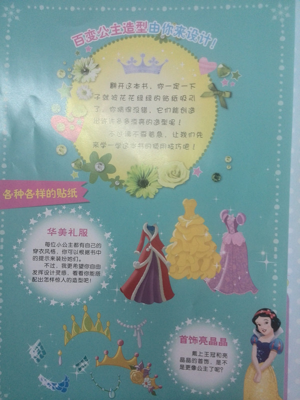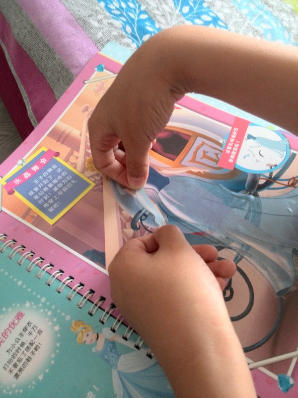 家中的快8岁的小娃最喜欢迪士尼公主系列的书了,有这种试读我肯定第一时间报名啦,幸得垂青,我得到了这次试读的机会,当时申请的是《迪士尼完美小公主拼音图画故事书》,但收到的却是《我是小小设计师之魔力贴纸换装书》,我倒是没怎么在意,反正只要是公主的书,我家娃都是爱不释手的。倒是童趣出版社的小编第一时间发来了短信,表示道歉,地带的版版也发了站内信说明了情况,为小编及地带版版的认真负责的态度点个赞! ![]() 下面来说说这本《我是小小设计师之魔力贴纸换装书》的具体的内容。我在果四五岁左右的样子给她买过迪士尼公主的贴纸,当时的贴纸还真的只是贴纸,没有什么特别之处,现在四年过去了,不得不感叹这个社会的进步了,这次的贴纸书比前几年的真的是漂亮又先进多了,现在的贴纸全部是透明的静电贴纸了,很有质感,比纸质的漂亮多了,而且能多次粘贴,不象以前贴上了就再也拿不下来了,这种透明的静电贴纸万一你贴歪了,可以撕下来重新再贴上去,直到你贴整齐为止,这样非常有助于锻炼孩子的准确性,一次两次……孩子多贴几次,最后终会成功的。 ![]() ![]() ![]() 书中还配送了精美的绘画模板,有皇冠、玫瑰花、高跟 鞋、桃心儿……等等孩子们平时喜欢画的图形,如果想画就把模板放在白纸上,拿笔按照轮廓一描就行了,简单实用还逼真,连我都想把模板贴在纸上描一幅了。 ![]() 书中把每一个迪士尼公主的名字及造型都一一列出,并且设计了很多种时尚的造型及衣服,还有好多漂亮的饰品,绝对能满足爱臭美的小姑娘的设计构想,可以充分发挥自己的想象力给公主们穿上自己为她们搭配的服装,体验变幻无穷的换装乐趣,果看完这本书后告诉我:“妈妈,我终于把迪士尼公主都认全了!”哈哈。这是她的意外收获,以前就知道是迪士尼公主,但哪个公主叫什么名字、长什么样儿她老对不上号,这本书把每个公主的名字都列出来了,而且还为每个公主设计了一个场景,让孩子们为公主们出席这个场景要搭配什么样的衣服来设计一下,这样就加深了孩子们对公主的印象,所以现在问果哪个公主长什么样儿、叫什么名字,她都能一一回答出来了。 ![]() ![]() ![]() ![]() ![]() 书的前半部分是贴纸,满足孩子们的设计梦,后面就要满足孩子们的涂鸦梦了,书中把每个公主都用线勾搭出了大体的轮廓,让孩子们为她们涂上自己喜欢的颜色,把黑白的公主们打扮成漂亮的、彩色的、迷人的小可爱们,每个公主的衣服也不一样,有连衣裙、有婚纱、有礼服……有度假装、有郊游装、有圣诞装,有冬装、有夏装,让孩子在涂鸦的同时也明白了不同的场合应该穿什么样的衣服合适,寓教于乐,是本很值得孩子们去拥有的图书。 ![]() ![]() ![]() 涂鸦前! ![]() 涂鸦后! ![]() ![]() 随书还赠送了精美的卡片,是小公主苏菲亚,可爱极了!