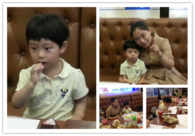 突然,轰隆隆,天公不作美,打雷了,看来运动会因为下雨要终止了,没办法只好各回各家了,看着小朋友依依不舍的样子,我们约定下午如果天气好了,就一起出去聚餐,让大家互相联络一下感情。还好下午的时候,天气突然放晴,一个妈妈找了一个适合的场地,大家约定3点左右到目的地集合,小妞当然准时到达了。大家边吃边喝,小妞第一次在很多人面前讲了故事,第一次亲手磨咖啡豆,第一次喝咖啡,第一次摆了80块的拼图,第一次自己去跟服务员点菜,第一次……小小的一个聚会,宝贝有了很多的第一次,我为宝贝能够鼓足勇气进行新的尝试而高兴。