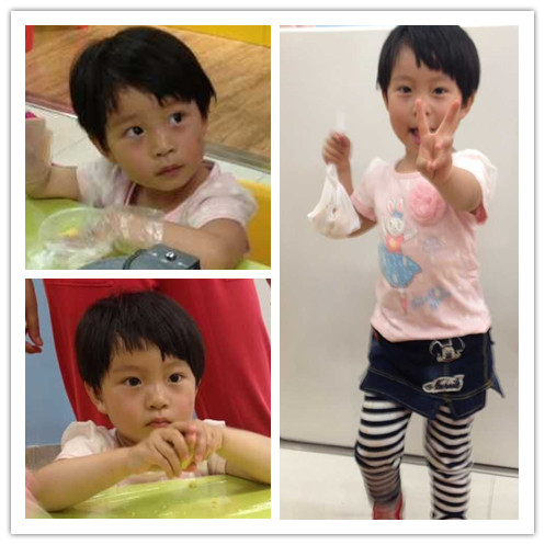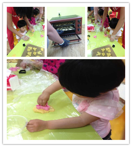 下午,宝贝睡醒后吵着要去做蛋糕,可担心宝贝最近吃的奶油太多真的是不敢带孩子去呀,于是我决定带着宝贝到朋友家的店里去做饼干。最近萱宝着魔般地迷上了手工DIY做糕点,想想六一宝贝亲手制作自己喜欢的饼干送给自己作为礼物还是非常有意义的。到了朋友那,人不算多,萱宝找了一个座位就坐下来埋头苦干了,最后在她和一个小哥哥的努力下,完成了制作的过程。看着小妞开心的笑容,我更是感到欣慰和幸福。