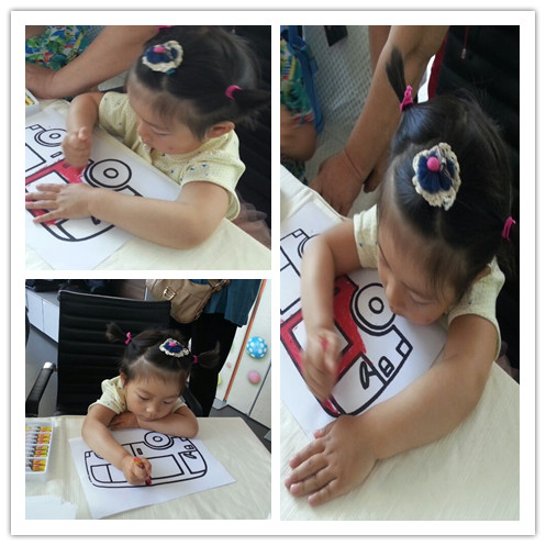 六一预备式:交通职业体验我做主。 由于朋友帮忙,小妞有幸参加了一场交通职业体验活动,这是小妞的第一次职业体验。活动9点开始,第一项是DIY涂鸦车模,宝贝们玩的都很开心,现场有很多车模可以选择,宝贝自己上前选了一台公共汽车的图画,我问她什么,答案让我很惊喜,宝贝说大巴车拉的人多,他想画好后,拉上所有的幼儿园小朋友一起到海边去烧烤,也许是我最近总提要带她去海边烧烤,所以记在心上了,不过带上那么多小朋友可是出乎了我的意料。大家画好后,都被贴上了一个黑板上,由小朋友们自己投票,没想到萱宝的作品还很受欢迎,应该是色彩鲜艳的原因,最后取得了第3名的成绩。