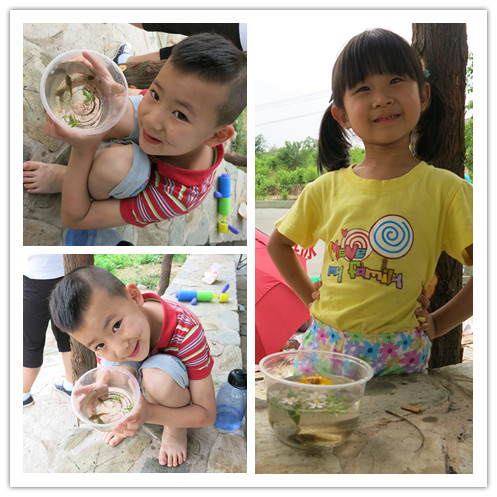 雪儿爸爸戏称:我的朋友们,在微信中经常见到雪儿与谦益在一起,质问雪儿爸爸,答应我们的青梅竹马怎么换了主角? 到达活动地点,哈哈除了我们一行二十多人外,没有了其他游客。采摘园在试营业中,所以游客少,二十多人专享了私人定制的感受。 哈哈,孩子们满山跑,狗儿水里游,男人们聊天,女人们采摘,各得其所。本是陪着谦益撒欢,但我看庆庆玩得更尽兴,带着谦益和雪儿泛舟湖面。本是很惬意的事情,但划到了桑树下,三人坐在船上贪婪地摘食桑椹的表现,看着像电影《疯狂原始人》里的画面。不和怎的,受了刺激的谦益把洞洞鞋当子弹扔到了湖里。 ![]() ![]() 玩打水仗呀,庆庆始终是孩子们追逐的对象。谦益带领着小伙伴们对庆庆进行围追阻截。一身泥水的庆庆被滋得好惨。井水好凉,谦益的衣服已经湿得贴在了身上。 孩子们玩着一个个游戏,搭账蓬、探险、捞蝌蚪,玩着玩着,各个孩子的性格跃然纸上,矛盾也层出不穷。怎么说呢,虽然孩子自己会解决,但有很多不愉快的事情是可以避免的。良好的团队是要和谐共处,各尽所能,彼此尊重。孩子们个性强,估计上学后都会有所改变。最可笑的是美美,给闹别的小伙伴劝架的时候先不评判对错,先让小朋友脱掉对方借她穿的裙子,呵呵呵,美美是越解决问题越复杂······ 烧烤嘛,我看他们定制的150串羊肉串时大叫不够,但实际上是数量正好。哈哈,亲子团吃喝的战斗力一般般。点火的时候,看出来了,各位爸爸对此并不擅长。唤来庆庆,反正他的衣服全湿,正好烤羊肉串的时候顺便烤干自己的衣服。 谦益嘛,一直四平八稳的坐在椅子上吃到小朋友们都跑去玩,他的不愉快来自于美美妈的炒饭。他霸占了美美的蛋炒饭,但他没顾上吃,急着吃烤串呢。等他回过味来,炒饭不见了。自己跑到一边赌气去了。哈哈,谦益是 护食的,我赶紧让童童给谦益送童童预留的蛋炒饭去:“童童快把你的蛋炒饭给谦益送去,他会记住你的。”童童把自己的蛋炒饭送了过去,谦益恢复了正常。 小朋友们围着桌子坐好,等着大餐。童童颇有大姐大的范儿,主动给孩子们倒饮料。 ![]() 这次采摘的果实主要是桑葚,真真的没有想到这么甜。让我流连在树下顾不得洗净再吃。 夏天虽己悄然而至,但忘记了在夏天的户外孩子会受伤的。不一会儿,谦益的脸上挂了彩,好长的一道子已见了血。我和庆庆安慰道:"哦,谦益你好man,脸上有了疤痕,很硬朗的线条。” 桑葚好吃,但代价大,一不小心就吃成了紫嘴妖怪,手也变成了紫爪怪。老乡告诉我们了妙法:用白桑葚就可以去掉紫色桑葚的痕迹,不但白桑葚可以去紫色,连桑树树叶也可以去除紫色。一试,果然这样,又学了一妙招。 ![]() ![]() 这是谦益和雪儿制作的蝌蚪家,很唯美吧!蝌蚪家的水盆里放置了花儿、叶儿来美化,俩个孩子都有着文艺范儿,但却对碗里有几只蝌蚪的数量争论不休。 ![]() 下雨了,伞成为了新玩具。谦益和雪儿在我的提意下,用伞儿搭成了帐篷钻进钻出。孩子们看见了都来参与,纷纷跟家长要伞来搭帐篷。 ![]() 童童妈妈组织孩子们在小亭子里阅读、画画,安静了一阵子后,孩子们爬山去了。下山后的谦益和牛牛乐此不疲的玩着滑板车。 ![]() 小朋友们一起画画,谦益画了一个宝瓶和城堡: ![]() ![]() 这组照片好逗,分明谦益是不恋红尘的修行者。 ![]() ![]() 这是谦益和童童互相给对方拍摄的照片,哈哈!