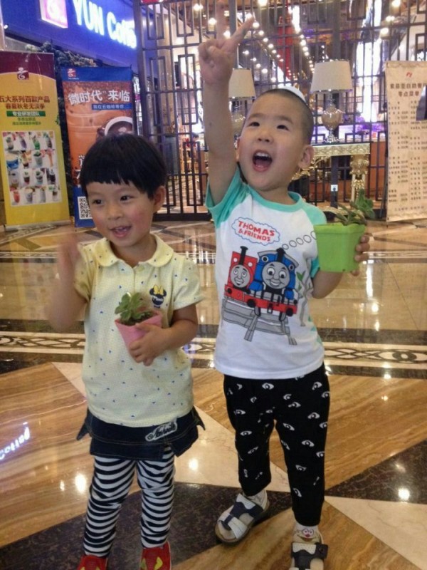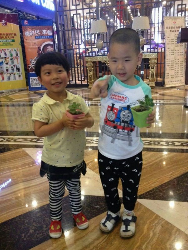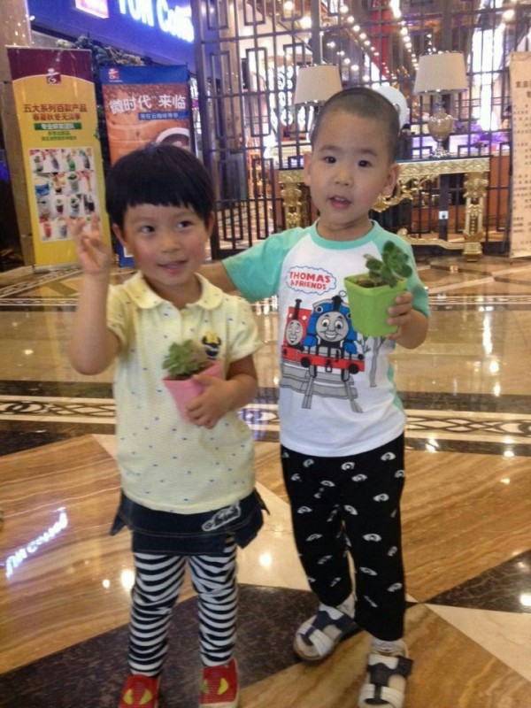 幼儿园的小朋友们拿到花都兴高采烈的给花起了名字,萱宝给小花起名“绿油油”,老师说宝贝起的名字很好听,不过其实这盆花不仅是绿色,这盆花经过太阳晒完就会变成红色,听到这,宝贝大声地说:“老师,我又有了一个新名字,叫变色花。”小鬼的反应速度不是一般的快,这点得到了幼儿园的老师和家长的一致认可。