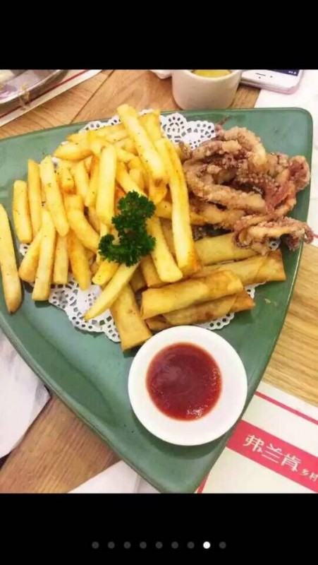 小朋友最爱吃的薯条和番茄酱,因为鱿鱼须我最喜欢,所以点了这个。